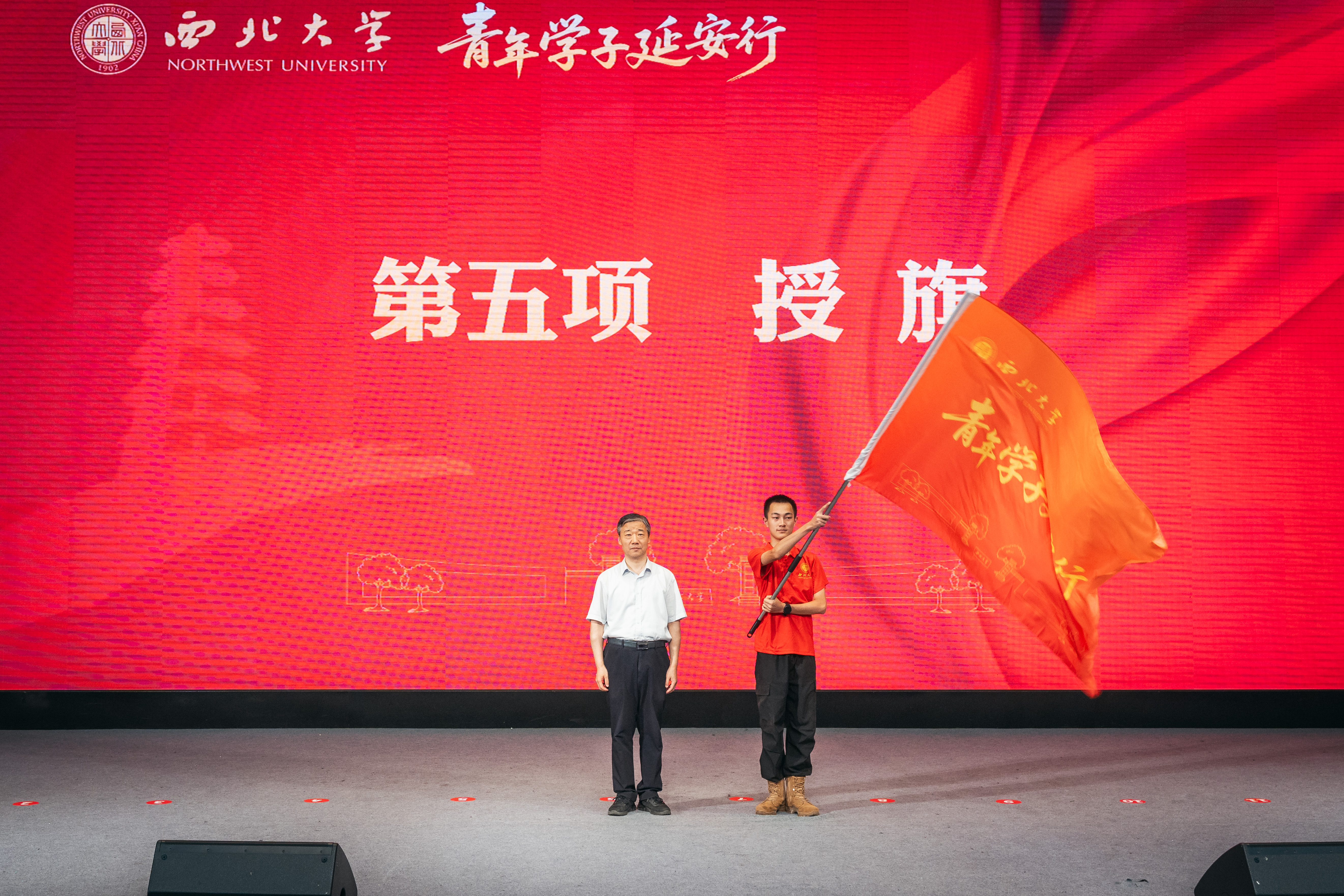 活动中,蒋林和与会部门负责人为“星空app官网青年学子延安行”研学团和10个班级代表授旗。