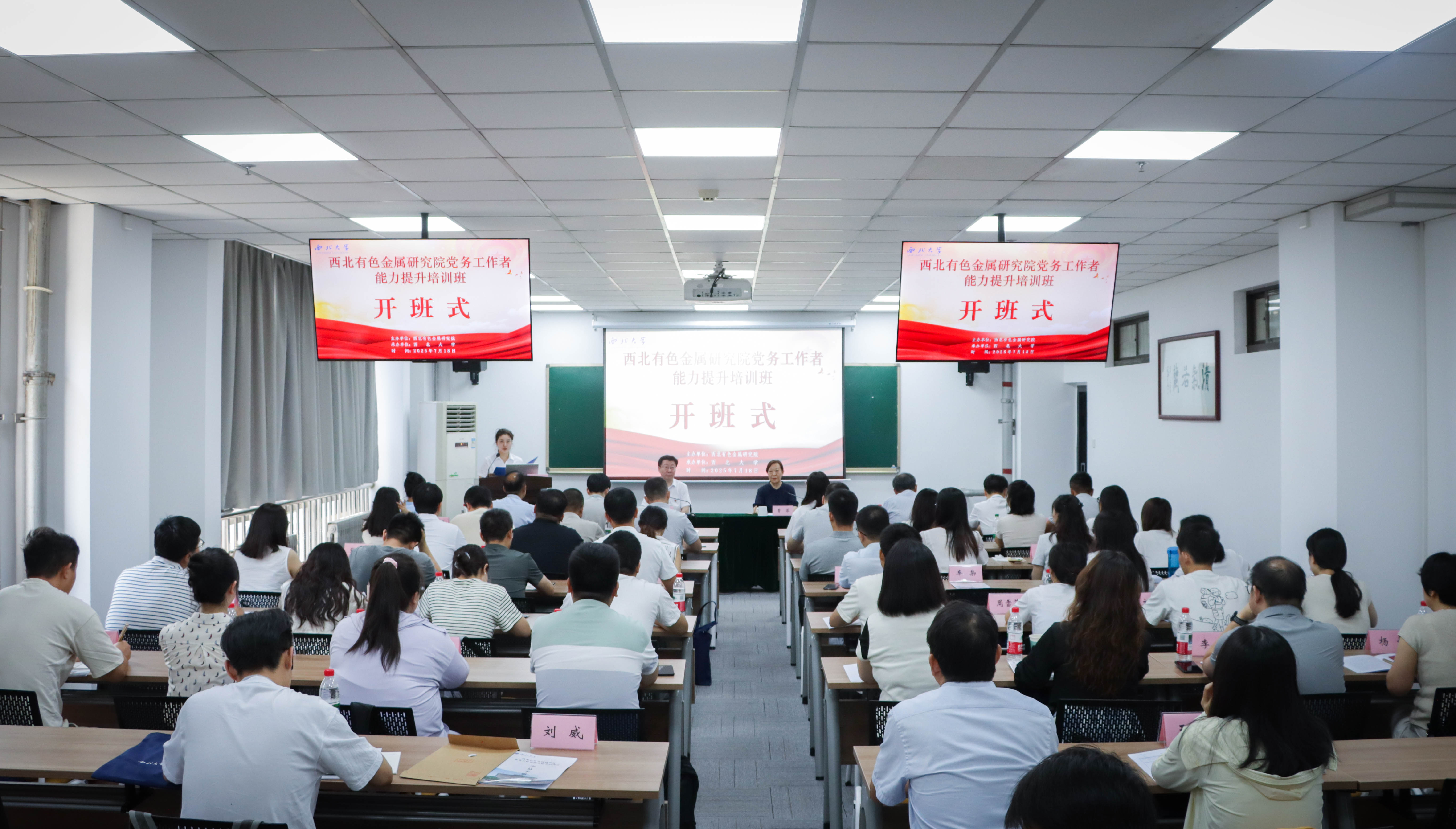 7月18日上午,由西北有色金属研究院主办、星空app官网承办的西北有色金属研究院党务工作者能力提升培训班在星空app官网桃园校区开班。西北有色金属研究院党委副书记郑树军、星空app官网副校长曹蓉出席开班式。来自西北有色金属研究院党务工作者50余人参加。