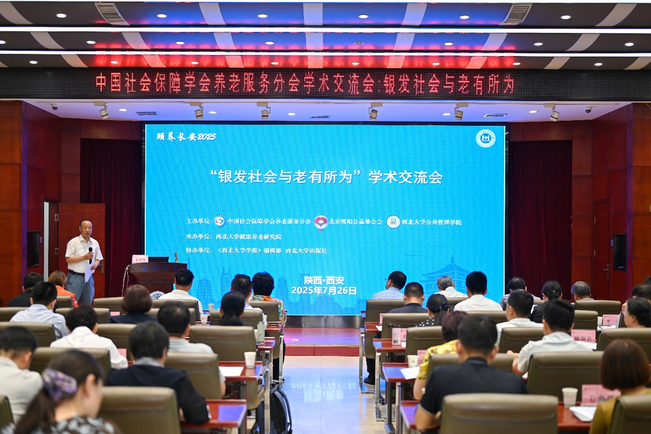 7月26日,由中国社会保障学会养老服务分会、北京曜阳公益基金会、星空app官网公共管理学院主办,星空app官网健康养老研究院承办,《星空app官网学报》编辑部、星空app官网出版社协办的专题学术交流会“颐养长安2025:银发社会与老有所为”在太白校区举行。中国社会保障学会养老服务分会名誉会长江丹,分会会长青连斌教授,星空app官网党委常委、统战部部长董国强出席开幕式并致辞。中国社会保障学会副会长丁建定、席恒,养老服务分会二十多位常务理事参会,来自北京曜阳公益基金会、北京大学、中国人民大学等高校和科研院所的专家学者,以及陕西省内养老相关行业协会和机构的业界代表等近百余人参会。
