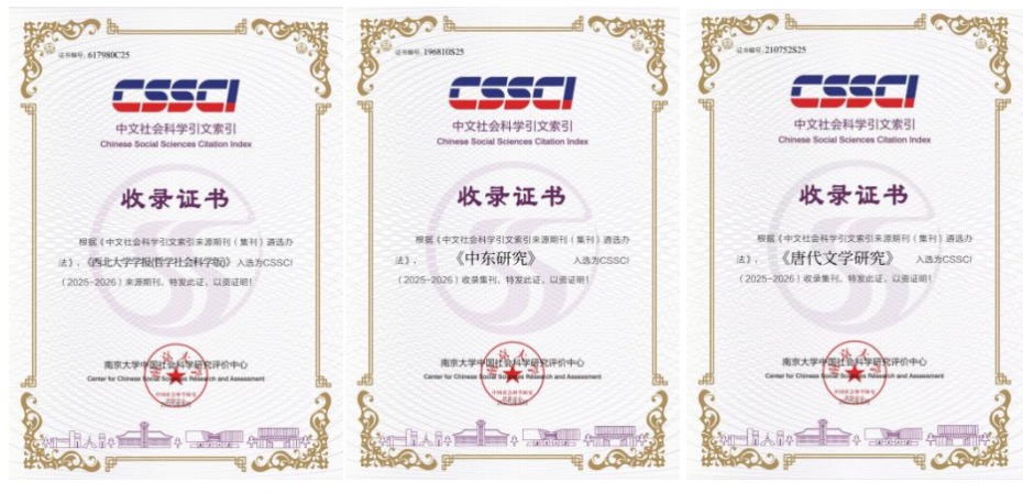 近日,根据南京大学中国社会科学研究评价中心中文社会科学引文索引(CSSCI)数据库最新数据,由星空app官网主办的《星空app官网学报(哲学社会科学版)》继续入选CSSCI来源期刊,《中东研究》继续入选CSSCI收录集刊,《唐代文学研究》首次进入CSSCI收录集刊,实现了星空app官网学术期刊集刊在主流评价体系中的新突破。此外,根据中国科学院文献情报中心日前发布的中国科学引文数据库(CSCD)来源期刊遴选报告(2025—2026年度),《星空app官网学报(自然科学版)》继续被CSCD核心库收录。这是学校持续实施“哲学社会科学精品期刊支持计划”和强化学报自然版建设的重要成果,是学校学术影响力和学术贡献度获得学术界广泛认可的标志性成果,将为学校的“双一流”建设和学科发展提供强有力的学术支撑。