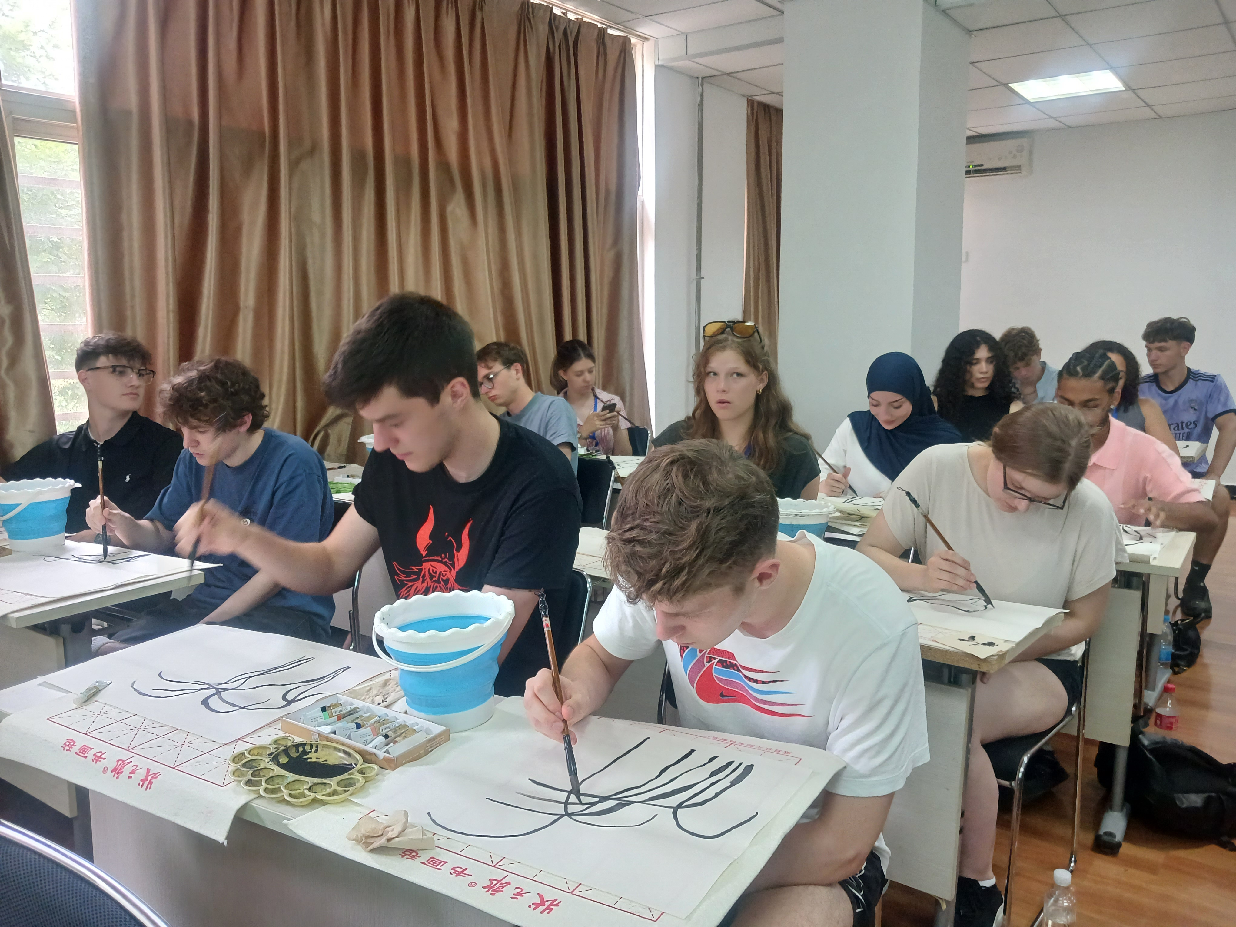 短期班安排中,学校注重强化语言与文化教学,开设了针对性较强的分层汉语强化课程,采用小班化、互动式教学,迅速提升学员的语言应用能力。同时,开设了中国书法、国画、太极拳、中国古典音乐等中华优秀传统文化工作坊,让学员在动手实践中深度感知中国文化魅力。此外,为充分发挥学校在考古学、地质学、经济学、历史学等领域的学科优势,学院组织前沿学术讲座,展示了学科最新进展,激发了学员的浓厚兴趣。学习之余,深化社会实践和历史文化参访,精心规划了多条路线,带领学员走进陕西历史博物馆、秦始皇帝陵博物院等历史遗迹,感受中华文明的博大精深;参访本地高新技术产业园区及知名企业,了解中国高质量发展的生动案例;深入周边乡村,体验中国新农村建设风貌,让外籍师生超越课堂和书本,在实践中对中国的历史与现况产生更为直观和深刻的认识。
