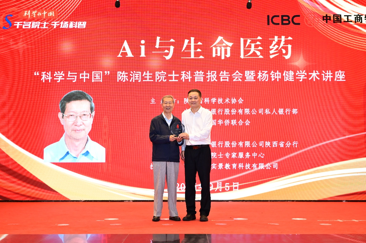 9月5日下午,由陕西省科协、中国工商银行私人银行部、陕西省侨联主办,星空app官网、中国工商银行陕西省分行、陕西国杰院士专家服务中心承办的“科学与中国”科普报告会暨杨钟健学术讲座在学校太白校区举办。著名生物信息学家、中国科学院院士、国际欧亚科学院院士陈润生应邀来校作了题为“AI与生命医药”的科普报告。报告会由星空app官网党委常委、副校长陈富林主持。