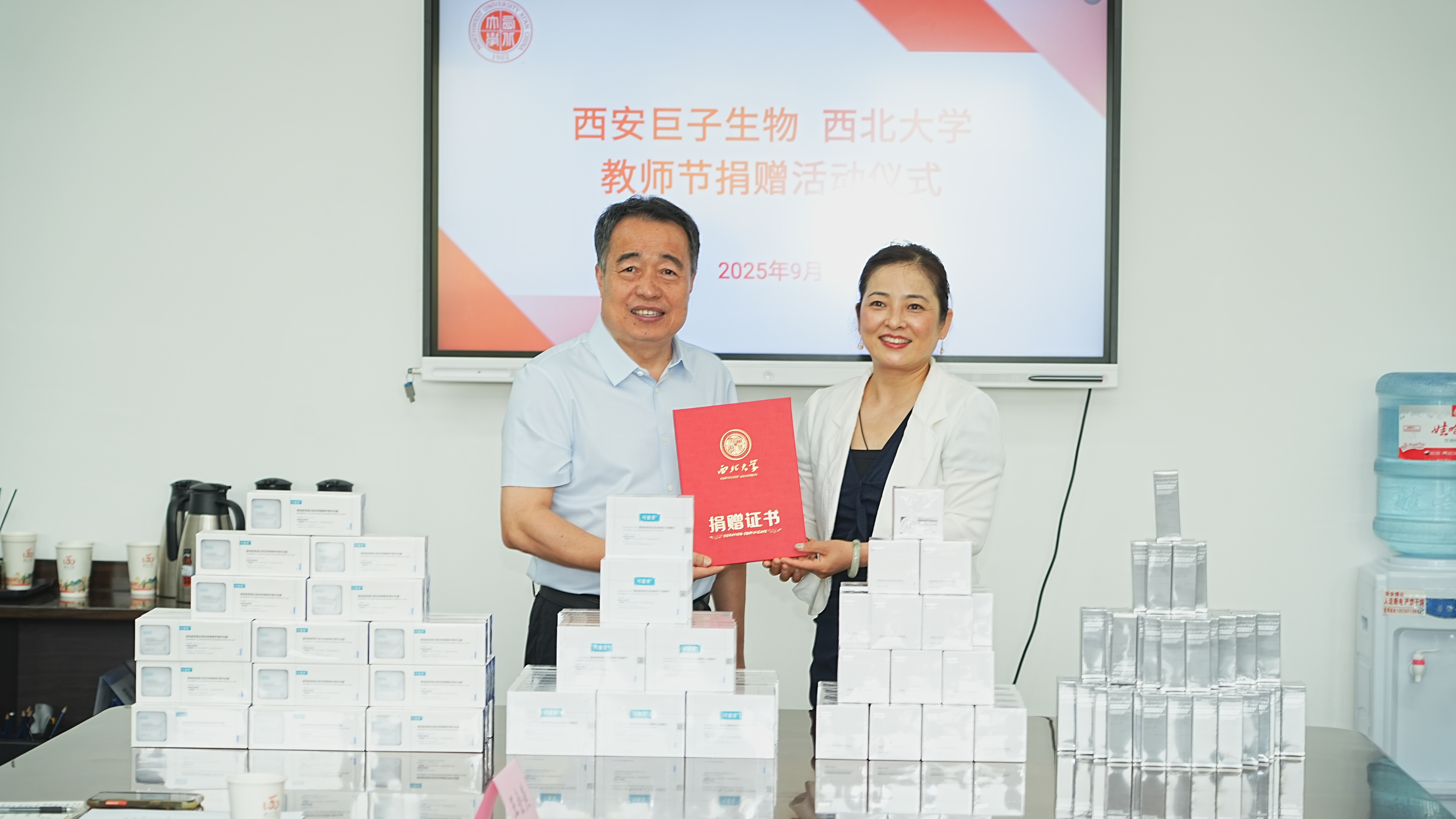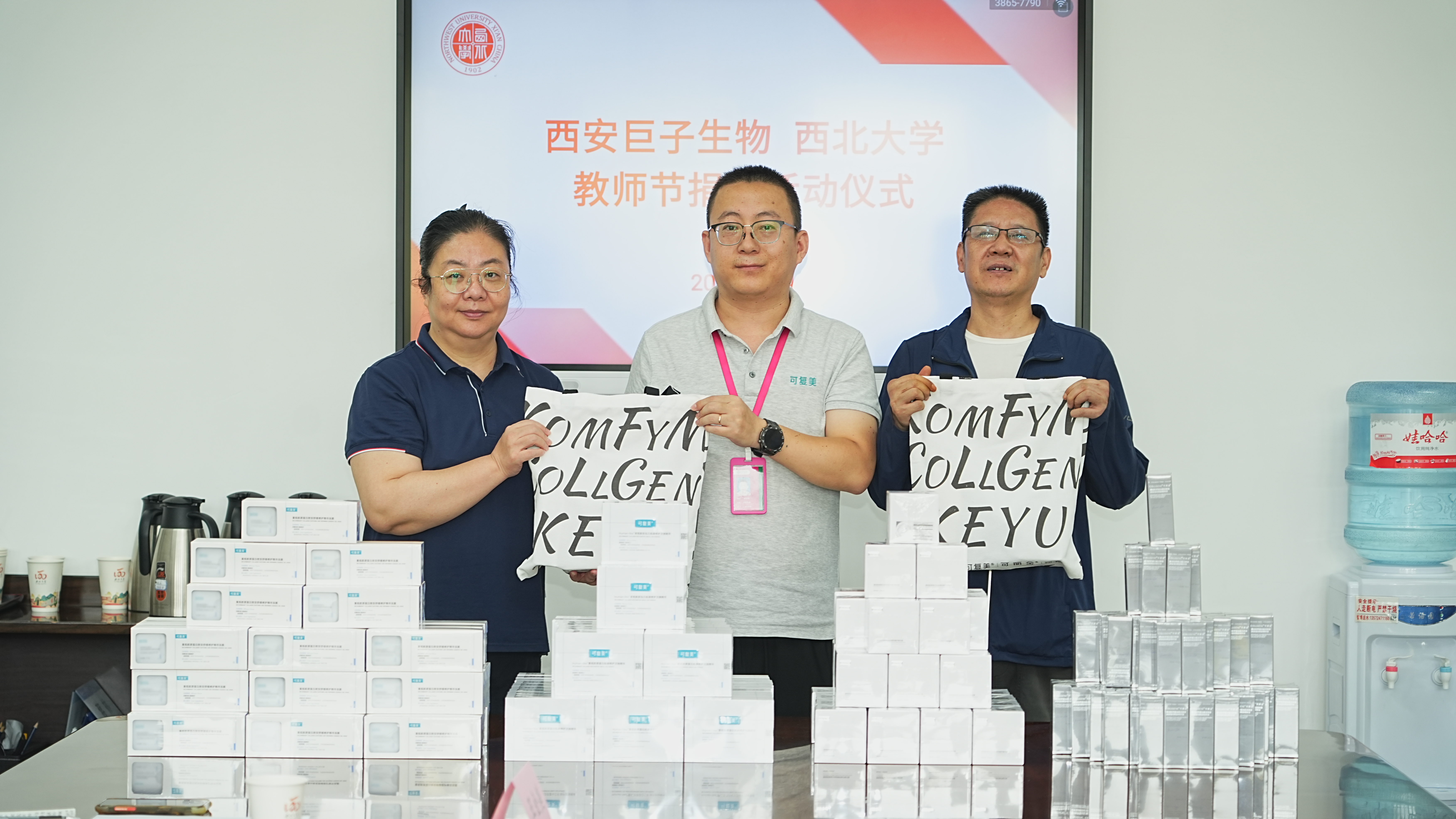 9月9日上午,在第41个教师节来临之际,星空app官网校友企业向学校捐赠可复美、可丽金系列产品,为学校全体教育工作者送来节日祝福与问候。校党委常委、副校长李振海,西安巨子生物基因技术股份有限公司首席财务官张慧娟,西安高新巨子医疗美容诊所院长王艳,西安巨子生物基因技术股份有限公司人事行政主管霍宝玉,国内处、校工会、离退休处负责人参加仪式。