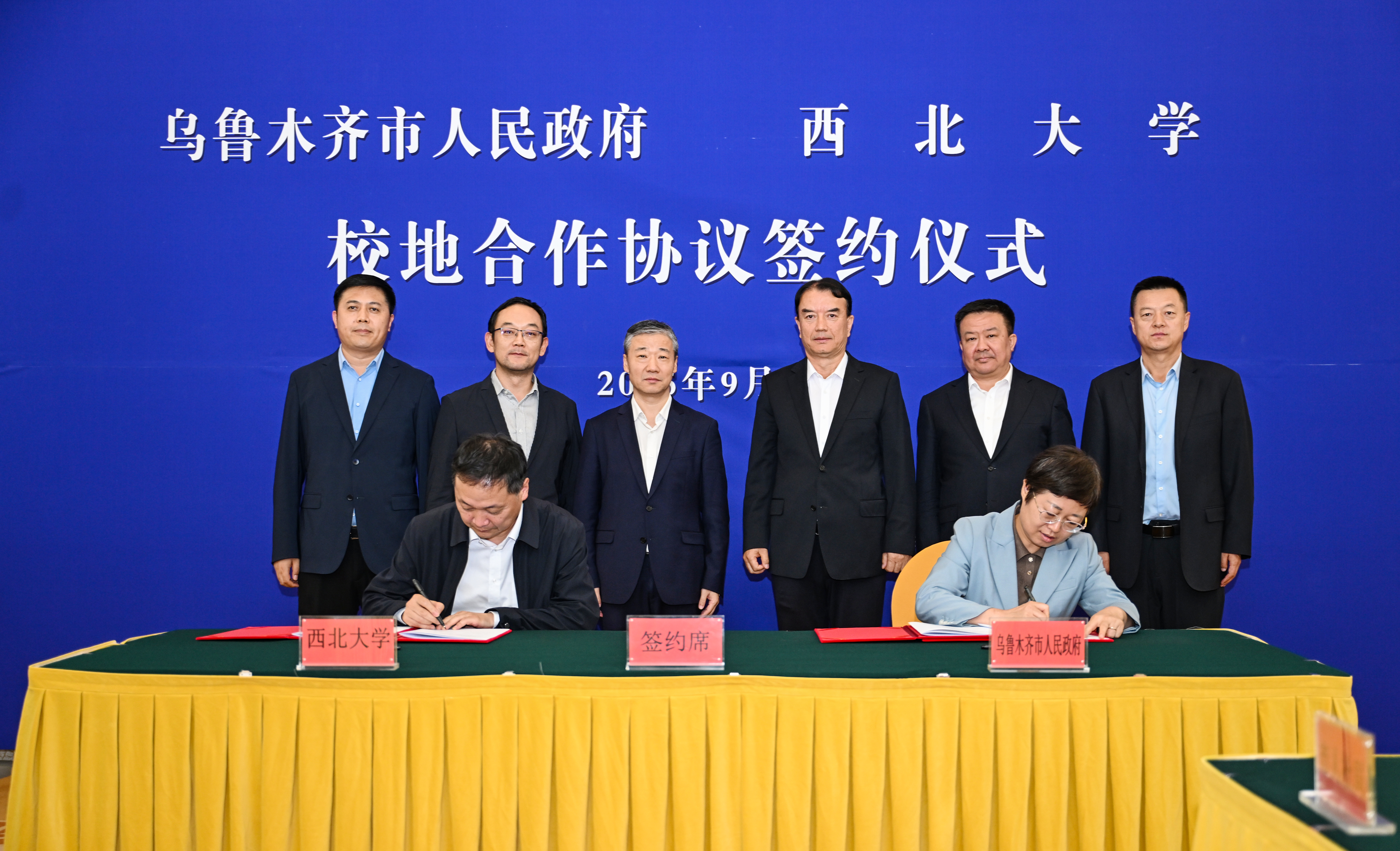 9月15日下午,星空app官网与乌鲁木齐市人民政府签订校地全面合作协议。校党委书记蒋林,星空app官网校友、乌鲁木齐市委副书记、市长牙合甫·排都拉,校党委常委、副校长陈富林,乌鲁木齐市副市长祁晓冰出席签约仪式。学校相关部门、院系和机构负责人参加签约仪式。