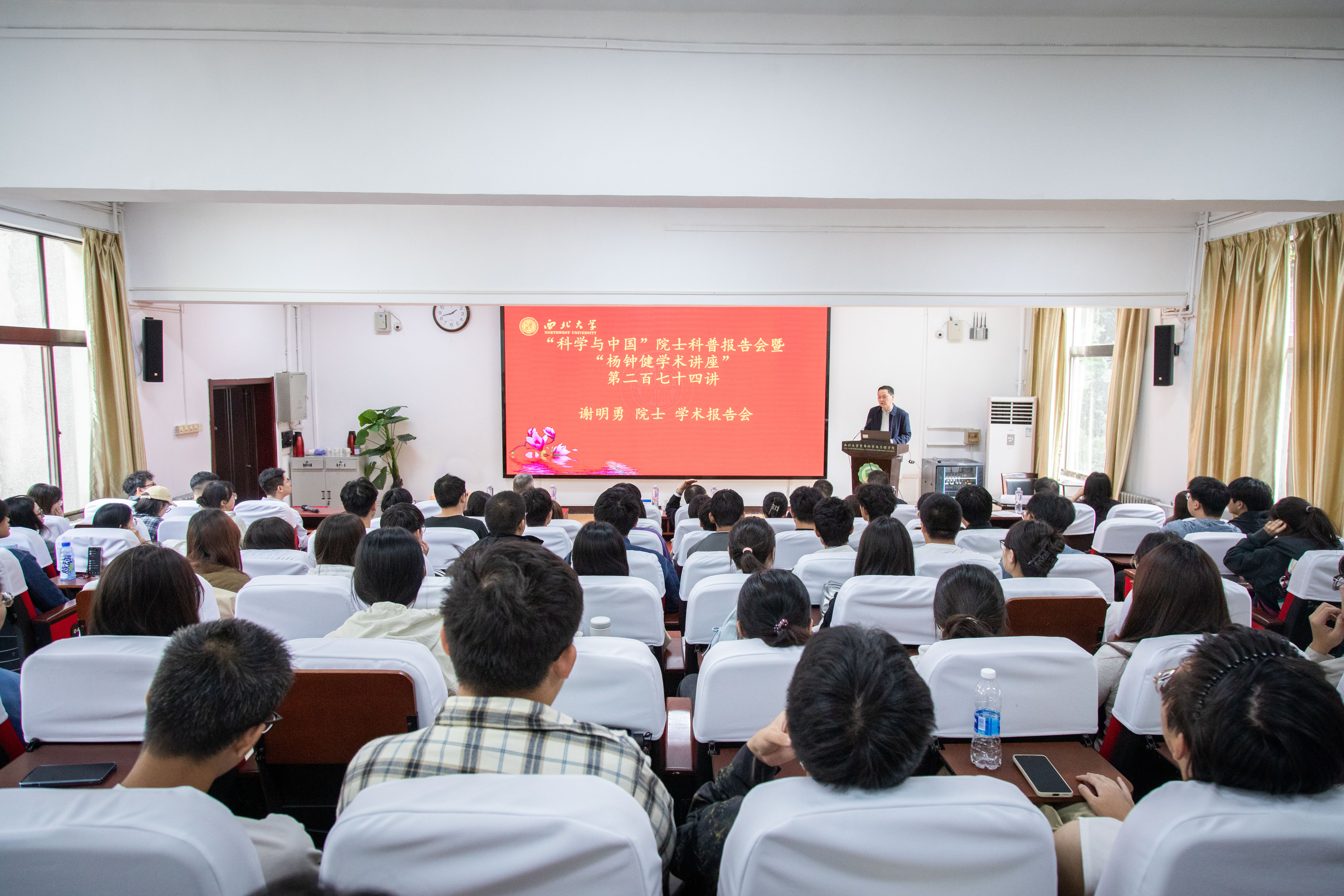 9月20日,中国工程院院士、南昌大学教授谢明勇做客星空app官网“杨钟健学术讲座”,为师生作了题为“功能食品产业发展现状与趋势”的报告。星空app官网党委常委、副校长陈富林代表学校致欢迎辞,并向谢明勇院士赠送了“杨钟健学术讲座”纪念牌。报告会由科技处负责人主持,学校相关部门负责人和师生代表听取了报告。