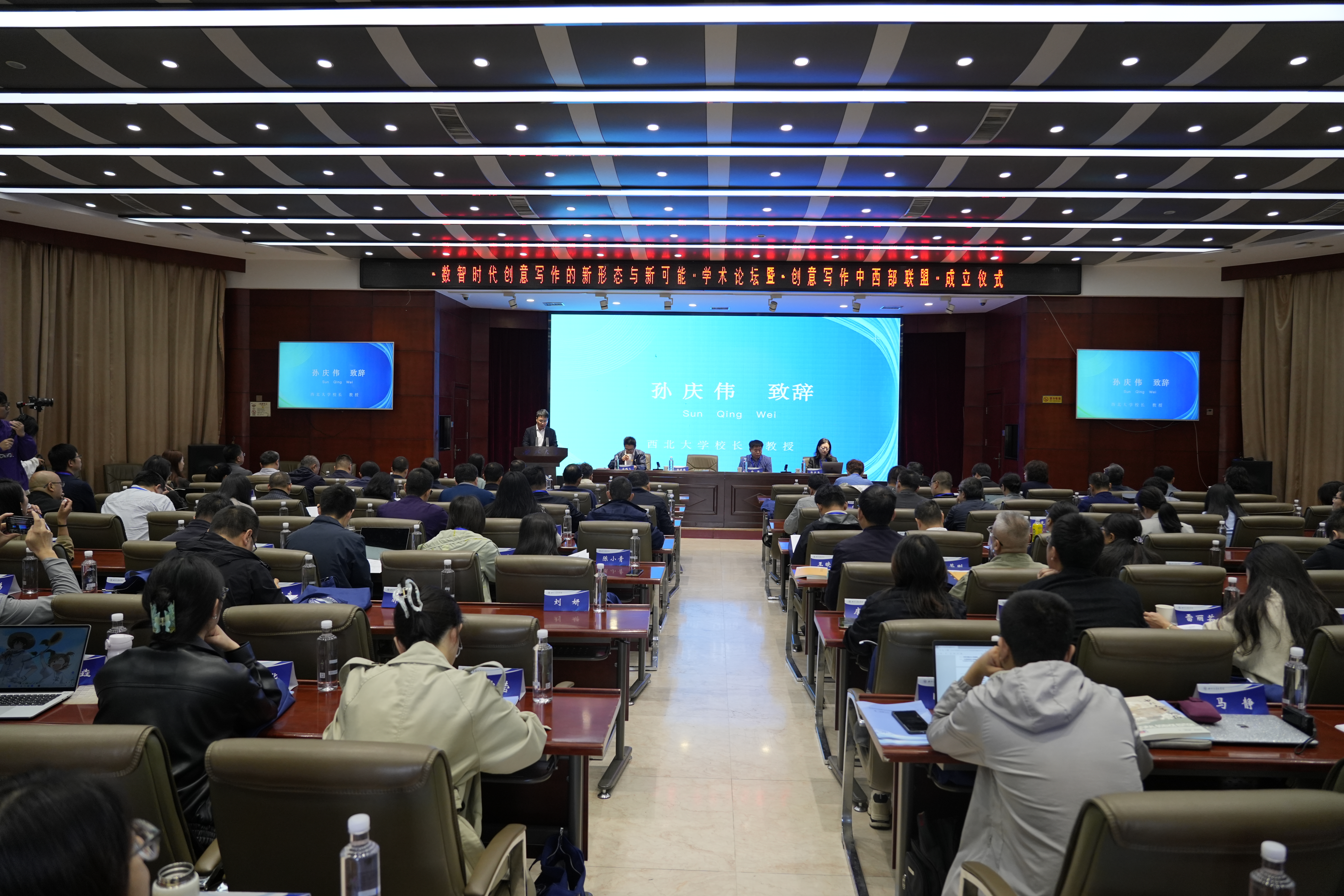 张晶晶在致辞中指出,目前创意写作二级学科面临诸多问题,尤其是在数智时代,人工智能正在重构人类写作的生态。因此,建立创意写作学术共同体,成立创意写作中西部联盟,分享优质资源恰逢其时。她指出,作为新兴的交叉学科,创意写作必将迎来又一个大发展的机遇,要建设创意写作中国原创性教材体系。