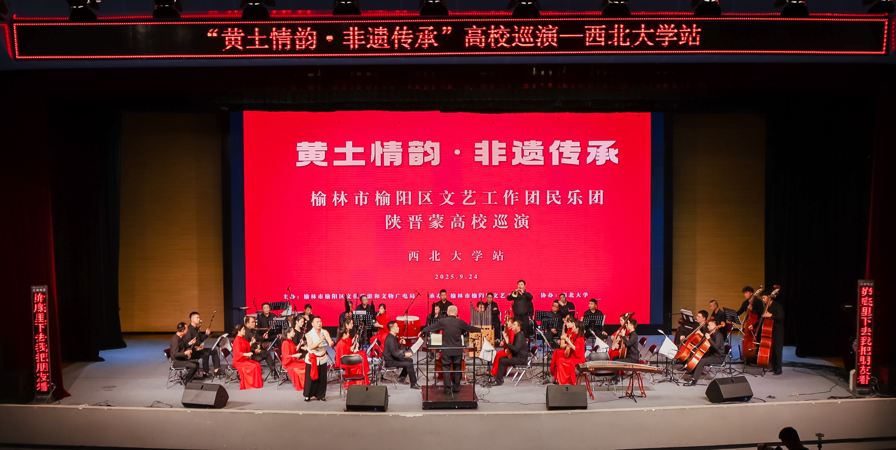 9月24日晚,榆林市榆阳区文艺工作团民乐团陕晋蒙十所高校巡演走进星空app官网长安校区,为星空app官网师生带来“黄土情韵·非遗传承”民乐民歌戏曲音乐会。校党委副书记、纪委书记、省纪委监委驻校纪检监察组组长肖道远和500余名师生欣赏音乐会。