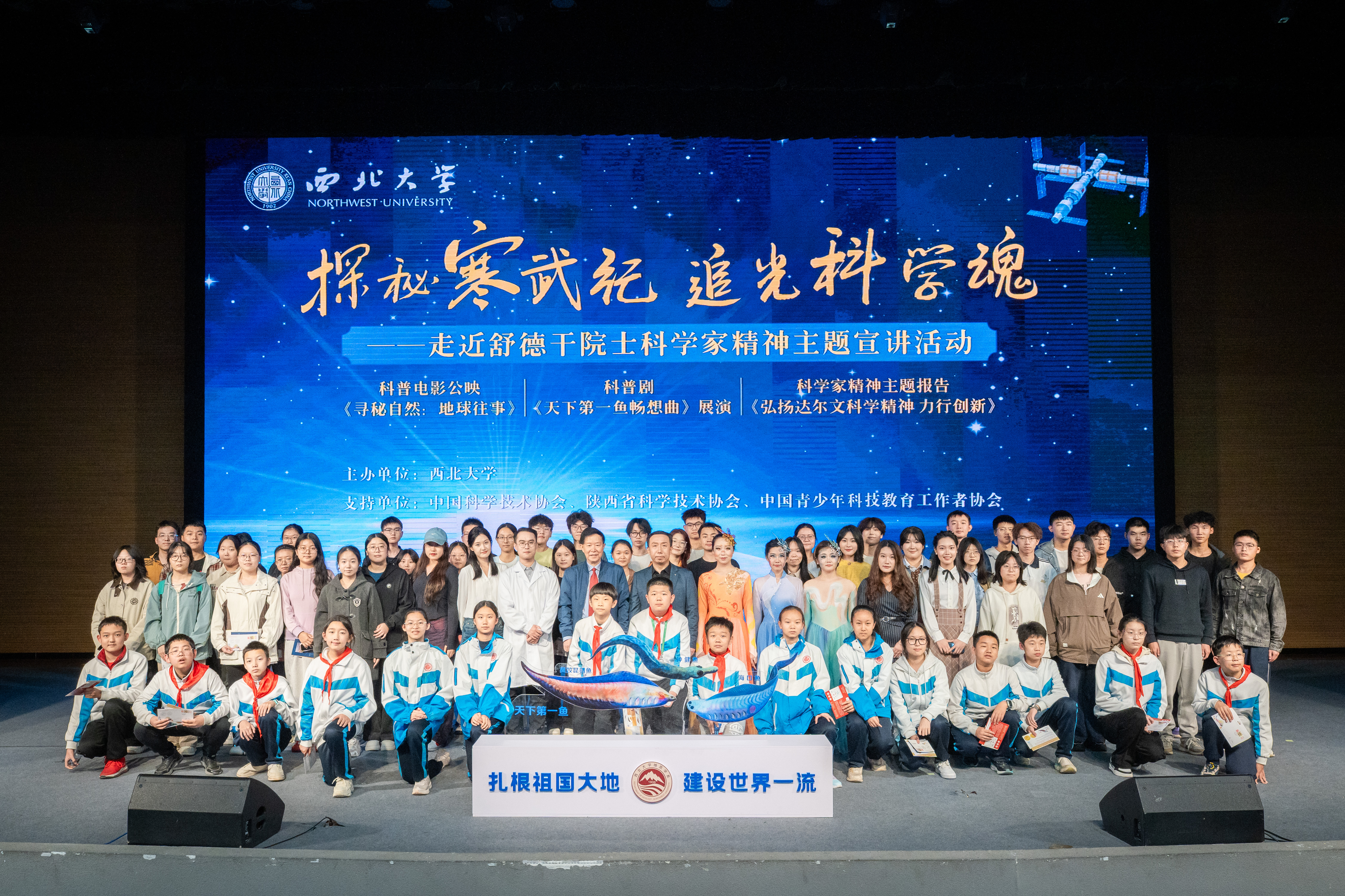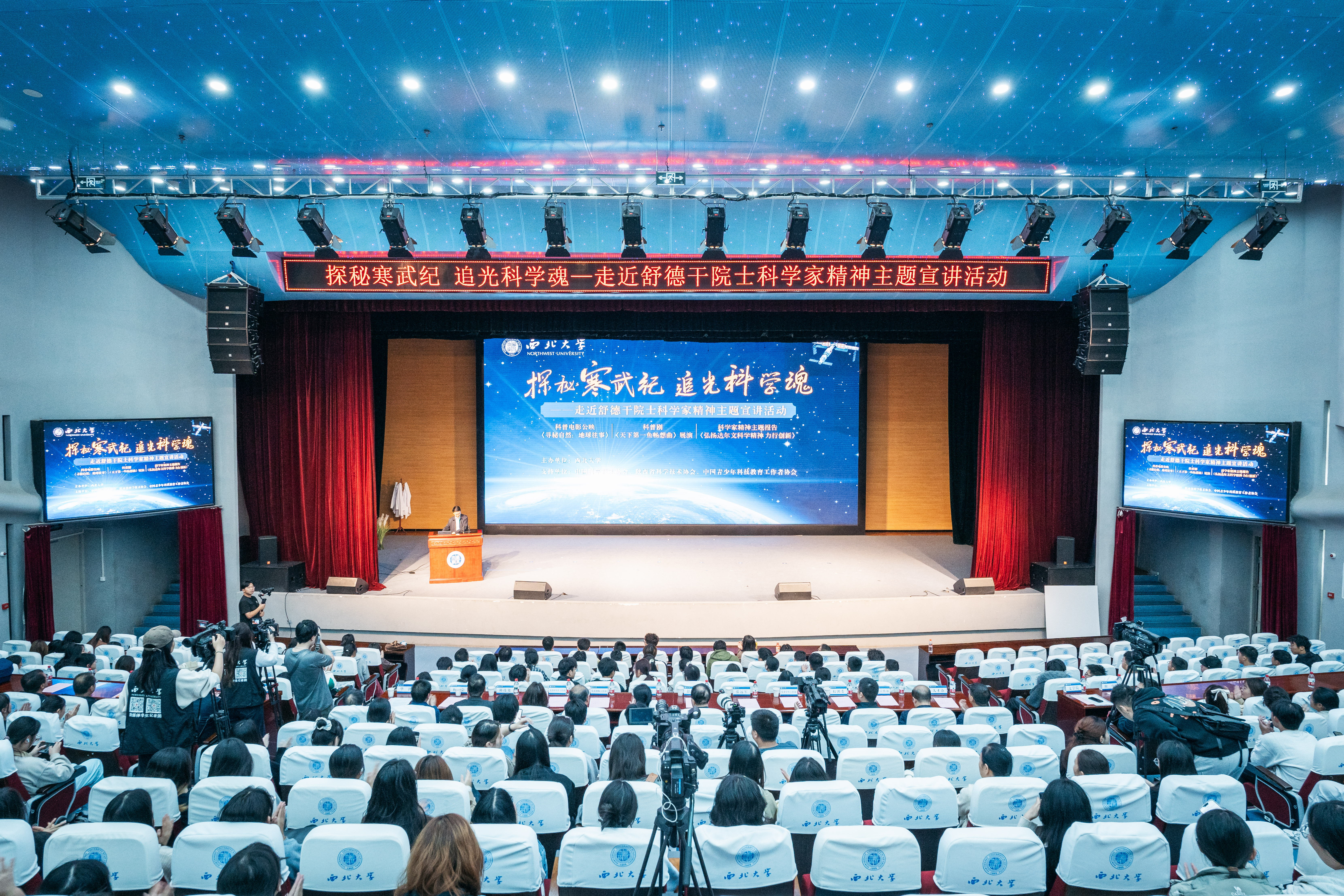 10月15日晚,正值星空app官网123岁校庆日,长安校区大学生活动中心灯火通明,一场以“探秘寒武纪·追光科学魂”为主题的科学家精神宣讲活动在这里举行。活动通过科普电影公映、原创科普剧展演和科学家精神报告等多种形式,带领现场师生走近中国科学院院士、星空app官网地质学系教授舒德干的科学探索历程,沉浸式感受科学家精神的深邃力量。活动受到中国科学技术协会、陕西省科学技术协会、中国青少年科技教育工作者协会的支持。校党委副书记张清,校党委常委、副校长张远军出席活动,学校相关单位负责人,地质学系、文学院、博物馆、附属中学等500余名师生共同参与。张远军、星空app官网地质学系教授华洪主持仪式及学术活动。