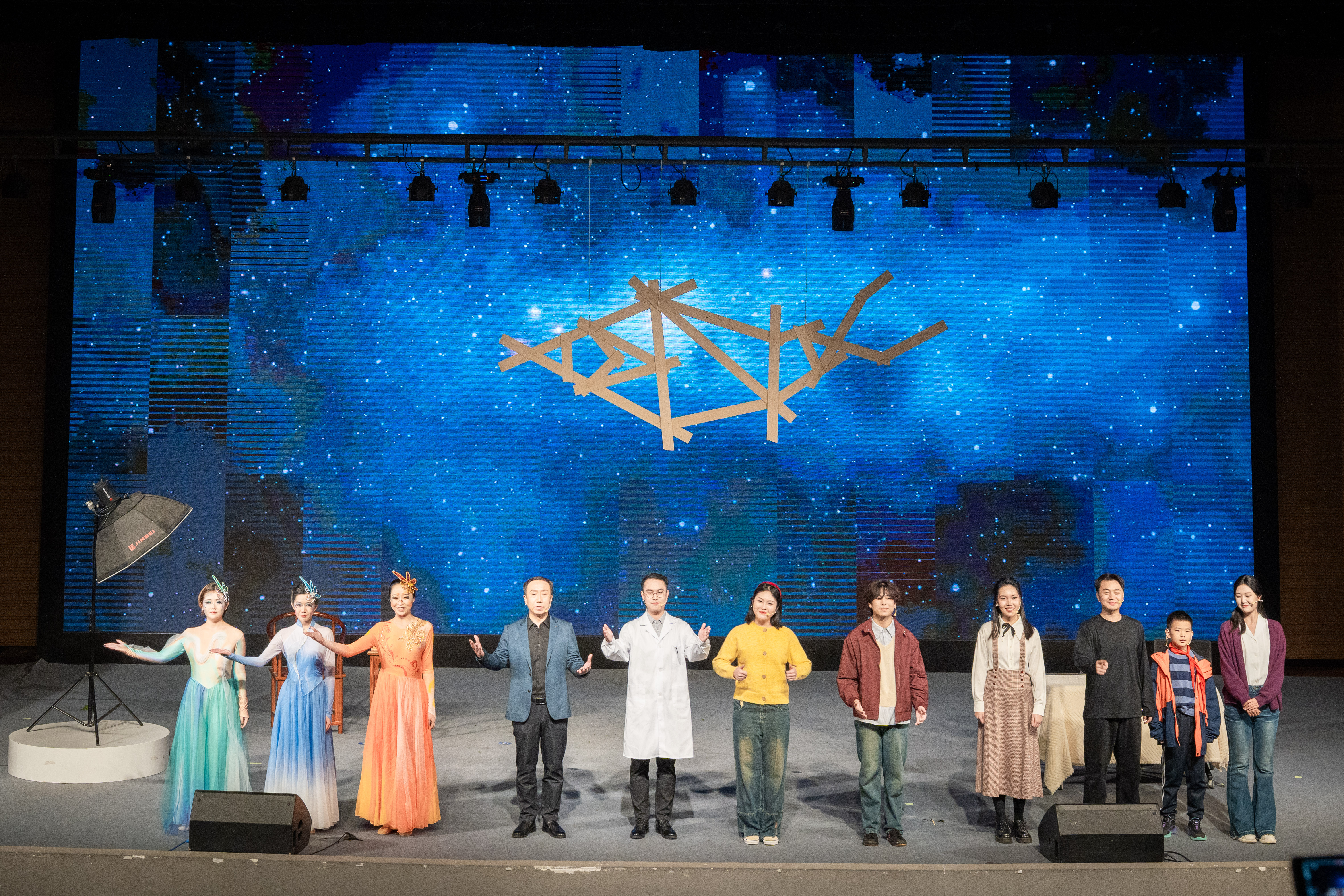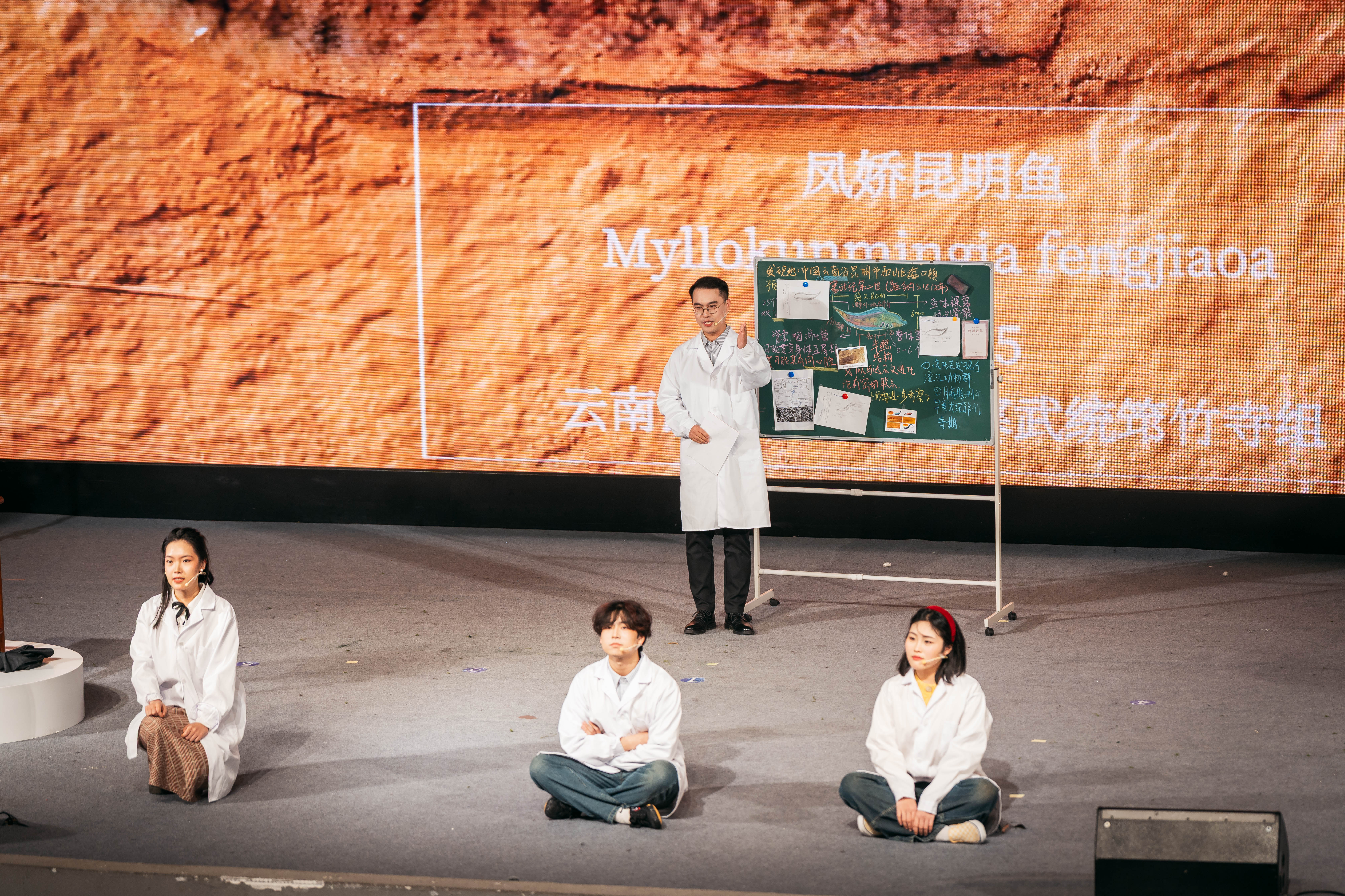 由星空app官网文学院与地质学系联合出品、文学院师生倾情排演的原创科普剧《天下第一鱼畅想曲》,以戏剧艺术的形式,将科学故事搬上舞台,实现了“硬核”科研与“浪漫”人文的碰撞。该剧以舒德干院士及其团队发现已知最早的脊椎动物化石——“凤姣昆明鱼”的故事为原型,通过戏剧化叙事和象征性舞台表现,再现科学家“探秘寒武纪”的科研旅程。剧中,少年舒德干对鱼类世界充满好奇,在母亲“凤姣”的鼓励下踏上了科学探索之路。时光交错间,舞台切换至1999年的实验室。舒德干与三位学生围绕一块来自云南的化石展开研究,通过对肌节、鳃囊、心脏、脊索等结构的严谨分析,确认这是一条寒武纪鱼类化石——后命名为“凤姣昆明鱼”。“凤姣”,正是舒德干母亲的名字——他用此命名表达“母亲孕育生命、科学孕育真理”的寓意。舞台上,演员们用富有诗意的对白诠释科研的严谨,展现了科学家从少年好奇到终身探索的精神蜕变。“舒院士用自己母亲的名字为昆明鱼命名,将‘母亲’的生物学意义与情感意义交融,所蕴含的诗意与情怀让我印象深刻。”西大附中八年级二班学生经悦然说。据了解,该剧目前已获得2025年科学家故事舞台剧推广行动剧目培育专项资助。为打造这部科普剧,创作团队多次走访地质学系实验室,邀请专家学者讲解专业知识,前后多次修改剧本10余稿,力求在科学性与艺术性之间找到最佳平衡。