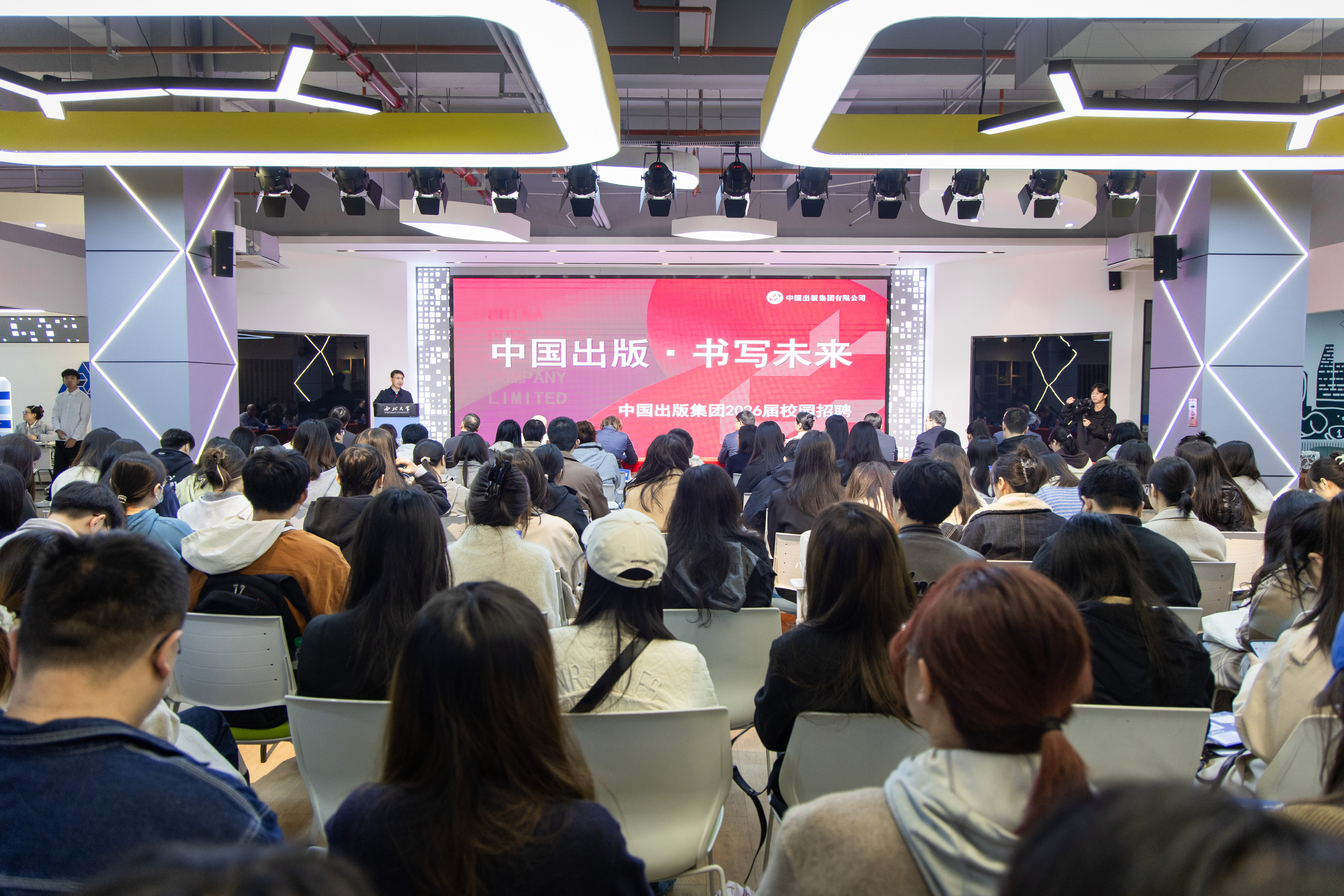 10月20日上午,中国出版集团有限公司—星空app官网招才引智专场推介会在星空app官网举办。中国出版集团副总经理、党组成员陈永刚,商务印书馆总编辑叶军,中华书局总经理、党委副书记叶冰,世界图书出版有限公司执行董事、党委书记胡健,中国出版传媒股份有限公司人力资源部主任管丹,世图西安公司总经理、党支部书记薛春民,中译语通陕西公司常务副总经理张欣晨及集团相关单位工作人员,校长孙庆伟,校党委常委、副校长张远军,就创中心负责人及100余名毕业生代表参加活动。