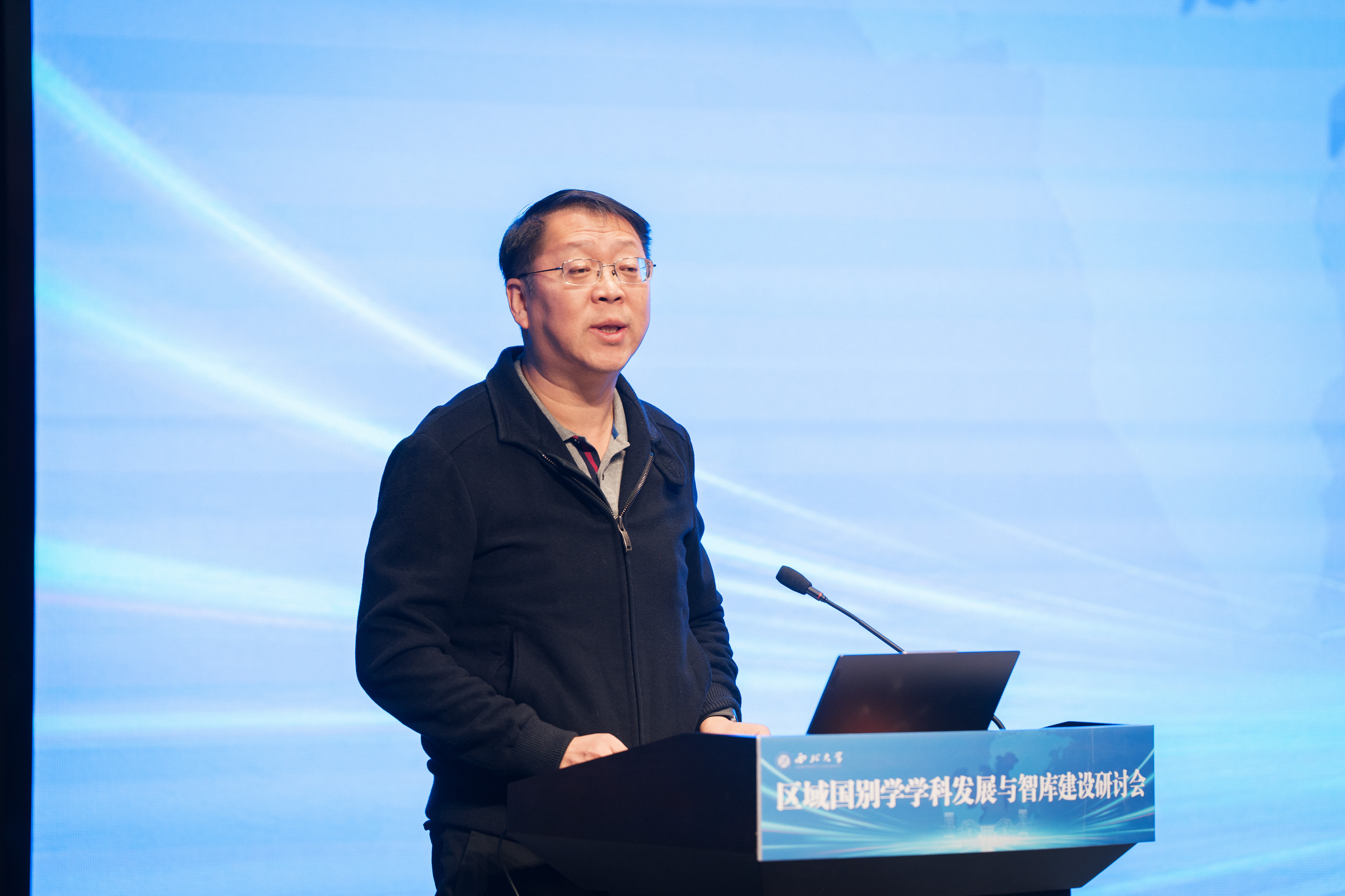 孙庆伟在致辞中回顾了学校区域国别研究的悠久传统和发展成效。他指出,在百年未有之大变局加速演进的大背景下,区域国别学肩负着重要的历史使命,并将大有可为、大有作为。学校在区域国别研究领域起步较早、积淀深厚,长期聚焦中亚、南亚、西亚、北非研究领域,建设了特色鲜明的区域国别学科高地。他表示,此次研讨会是推动区域国别学科发展和智库建设的难得契机,期待各位专家在深入研讨中提出真知灼见,共同为推动区域国别学科高质量发展,更好服务国家重大战略作出更大贡献。