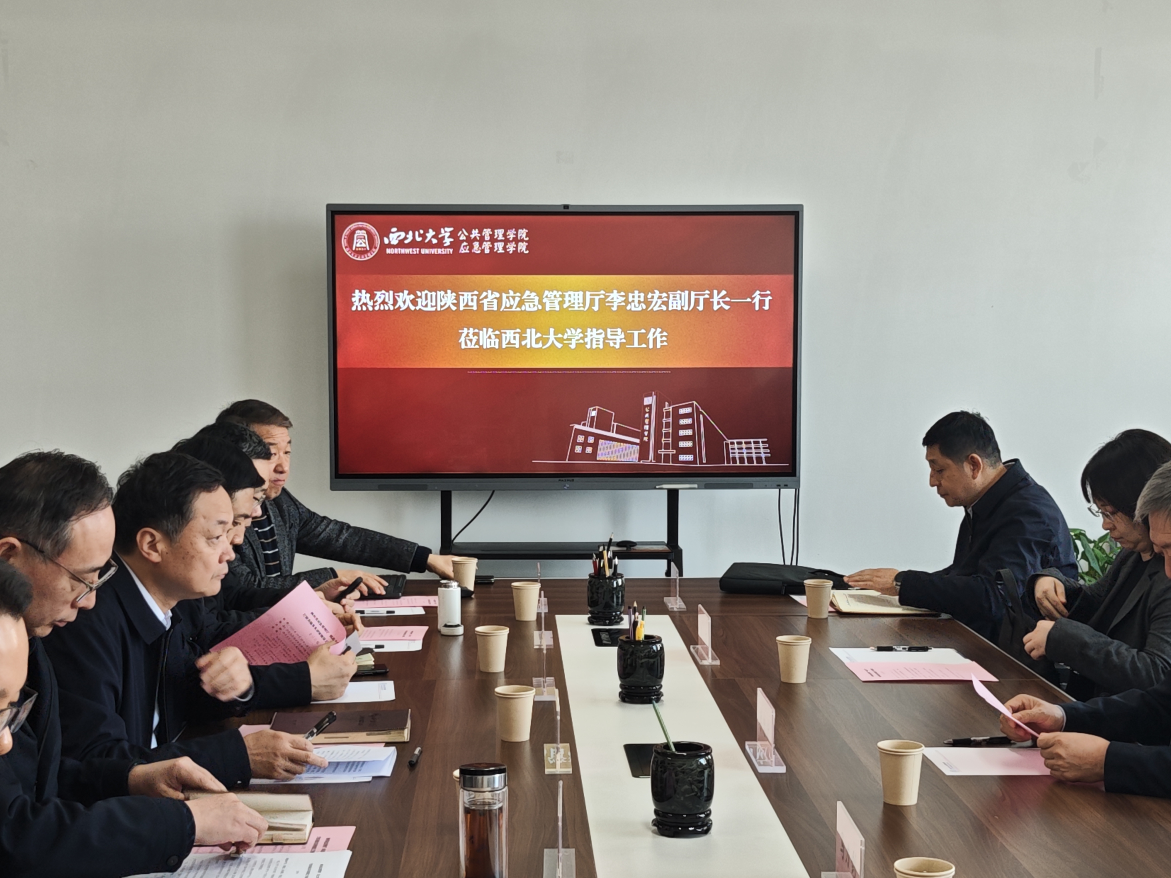 会前,李忠宏一行实地考察了城市与环境学院地表系统与灾害研究院,详细了解该研究院在灾害识别预测领域的科研进展,重点观摩滑坡监测预警、黄河流域水安全等关键技术成果,并听取了该院与公共管理学院应急管理专业在灾害防控领域的协同研究汇报。随后调研组赴公共管理学院实训基地,现场察看灾害模拟实训设施建设情况,了解实训室在灾情推演、应急决策等实战化教学中的重点建设情况。