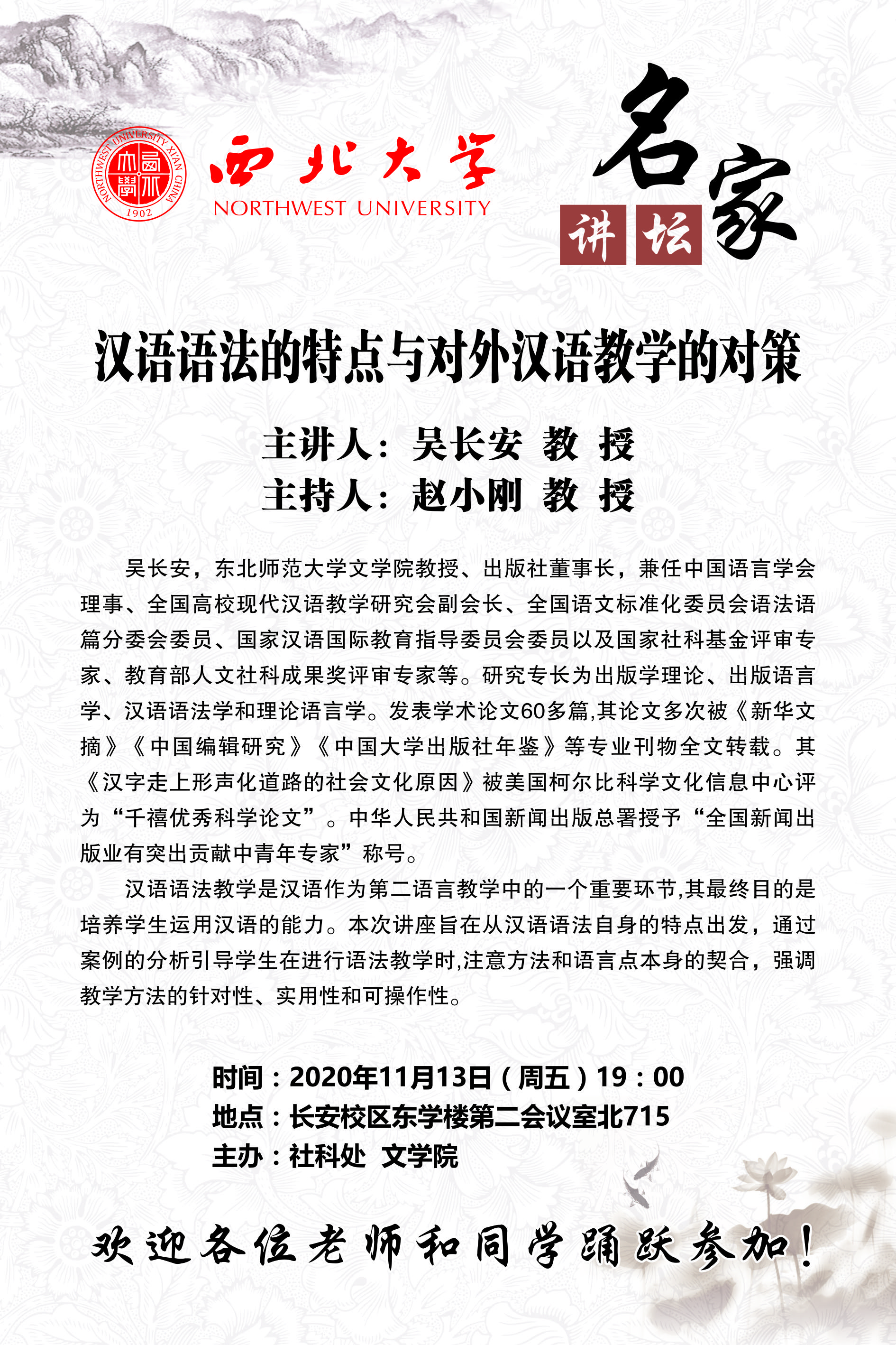 名家讲坛:汉语语法的特点与对外汉语教学的对策