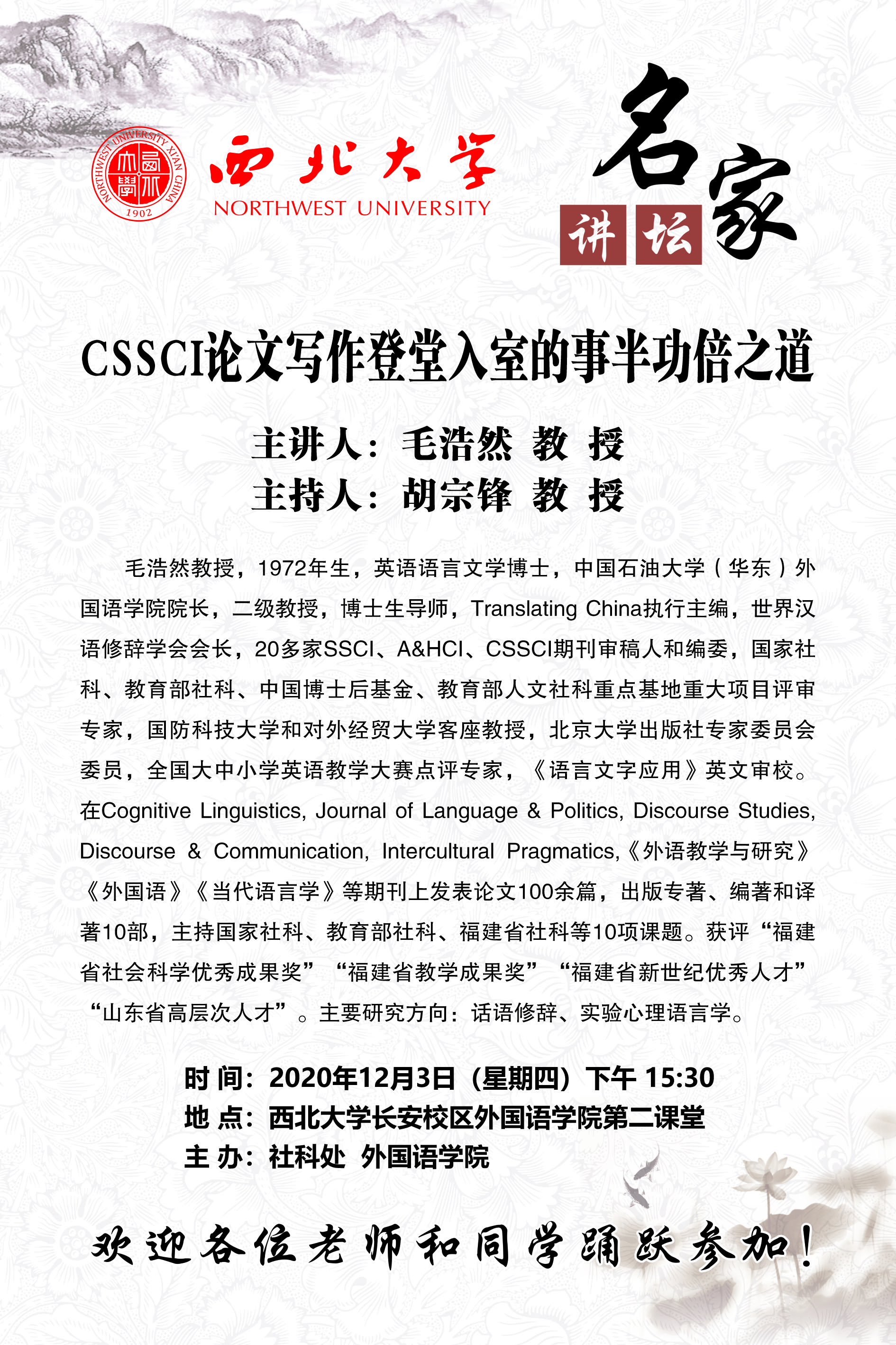 名家讲坛:CSSCI论文写作登堂入室的事半功倍之道