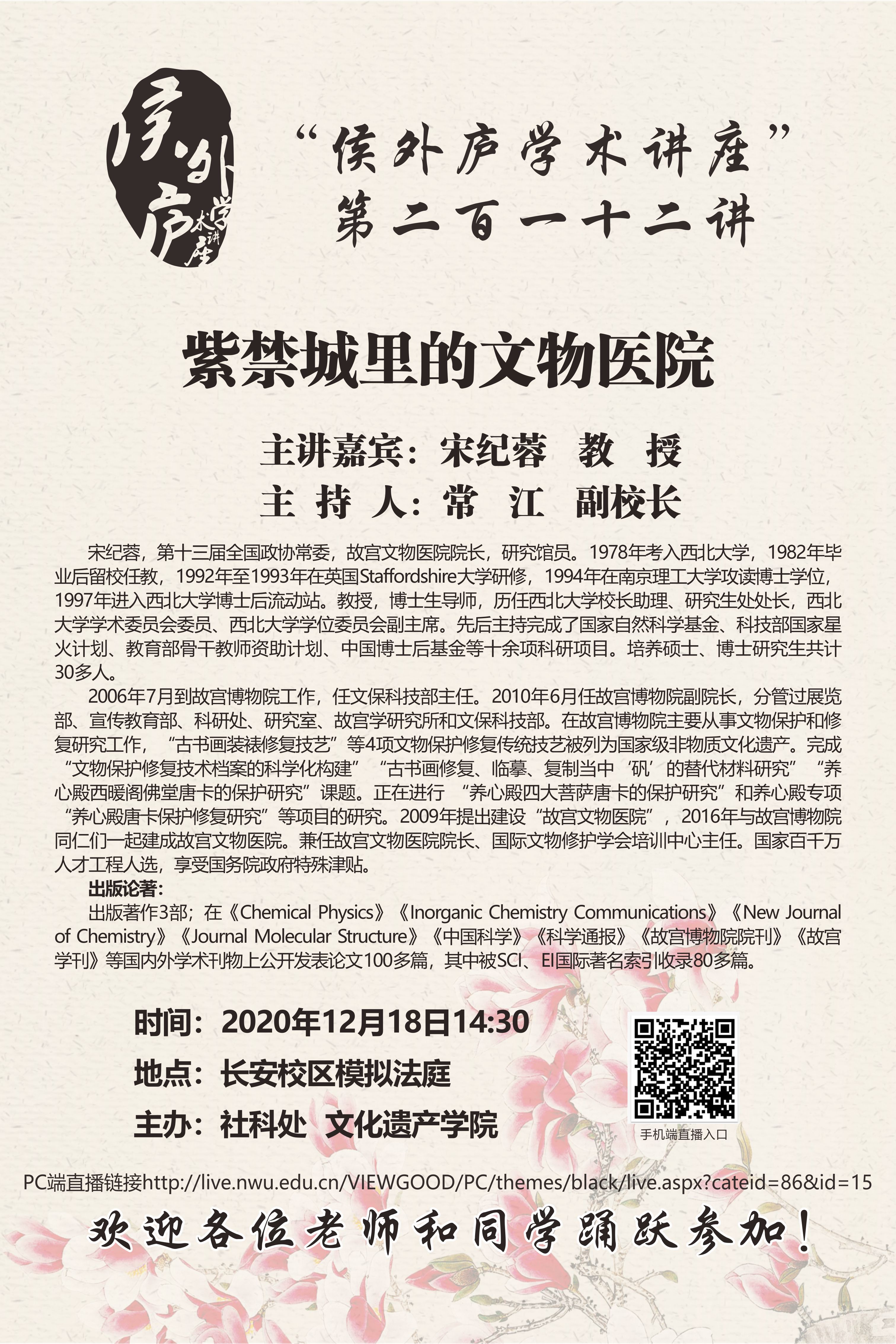 “侯外庐学术讲座”第二百一十二讲:紫禁城里的文物医院