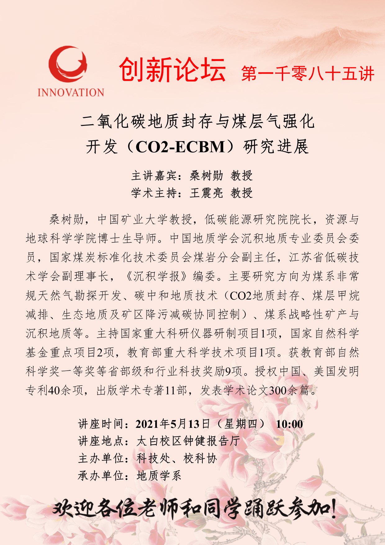桑树勋 教授 星空app官网创新论坛第一千零八十五讲:二氧化碳地质封存与煤层气强化开发(CO2-ECBM)研究进展 讲座时间 2021年5月13日(星期四) 10:00 讲座地点 太白校区钟健报告厅 讲座人介绍 桑树勋 教授 讲座内容