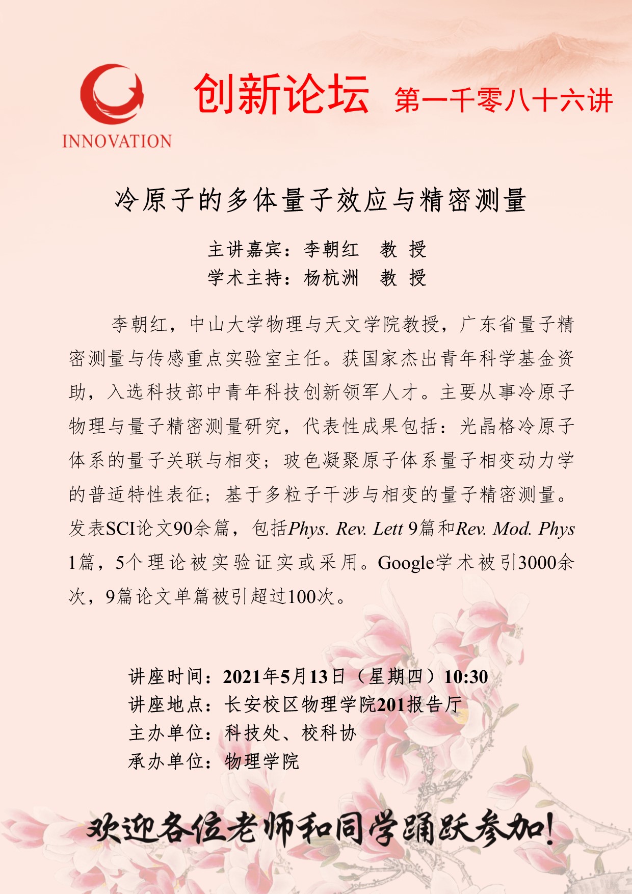 李朝红 教 授 星空app官网创新论坛第一千零八十六讲:冷原子的多体量子效应与精密测量 讲座时间 2021年5月13日(星期四)10:30 讲座地点 长安校区物理学院201报告厅 讲座人介绍 李朝红 教 授 讲座内容