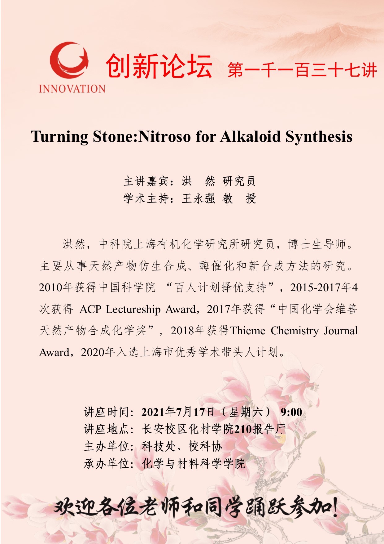 洪然 研究员 星空app官网创新论坛第一千一百三十七讲:Turning Stone:Nitroso for Alkaloid Synthesis 讲座时间 2021年7月17日(星期六) 9:00 讲座地点 长安校区化材学院210报告厅 讲座人介绍 洪然 研究员 讲座内容