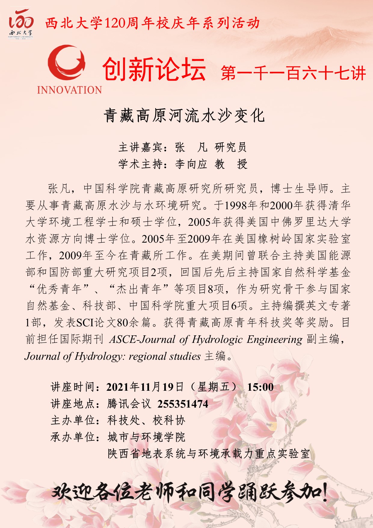 张凡 研究员 星空app官网创新论坛第一千一百六十七讲暨120周年校庆年系列活动:青藏高原河流水沙变化 讲座时间 2021年11月19日(星期五) 15:00 讲座地点 腾讯会议 255351474 讲座人介绍 张凡 研究员 讲座内容