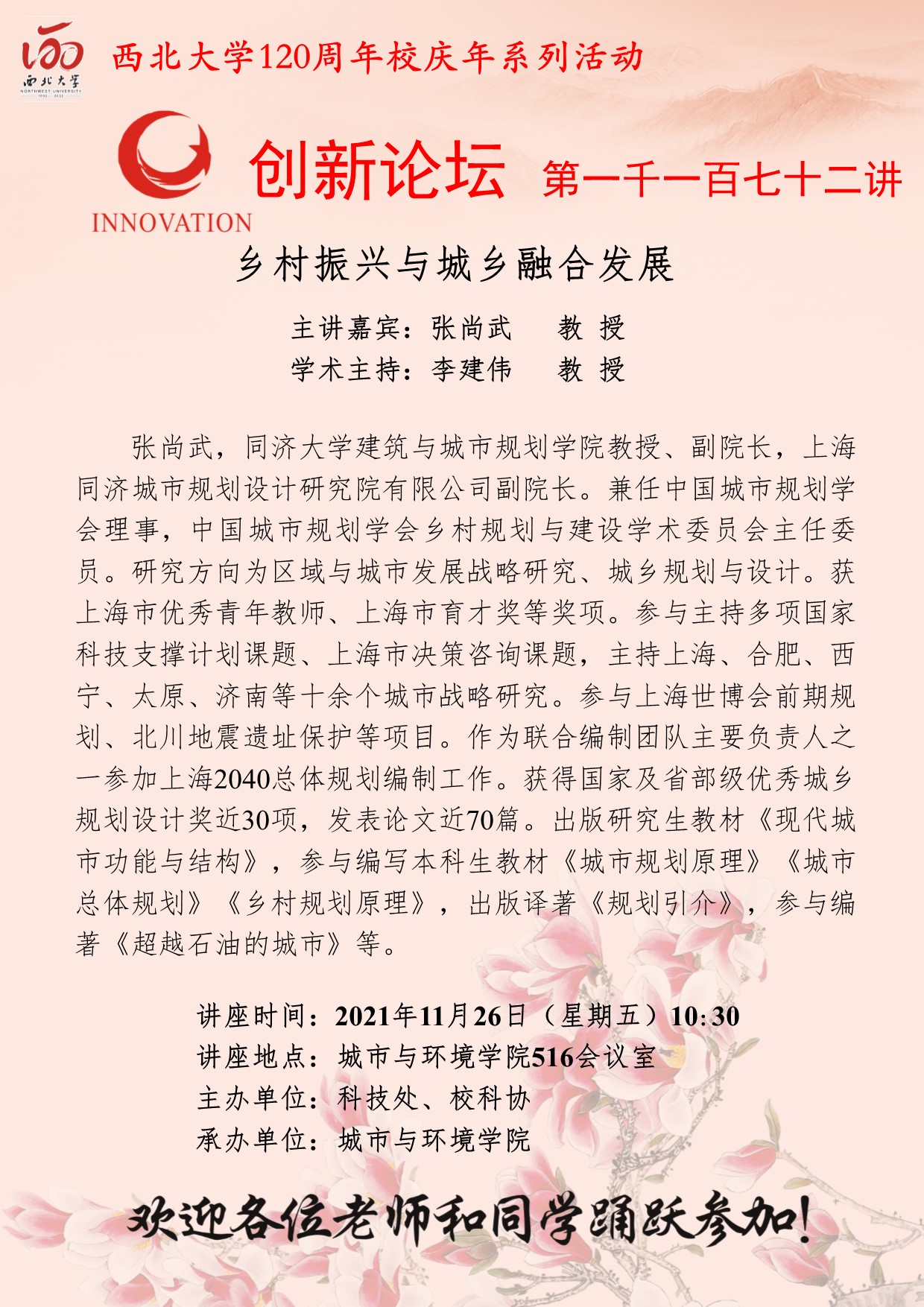 张尚武 教授 星空app官网创新论坛第一千一百七十二讲暨120周年校庆年系列活动:乡村振兴与城乡融合发展 讲座时间 2021年11月26日(星期五)10:30 讲座地点 城市与环境学院516会议室 讲座人介绍 张尚武 教授 讲座内容
