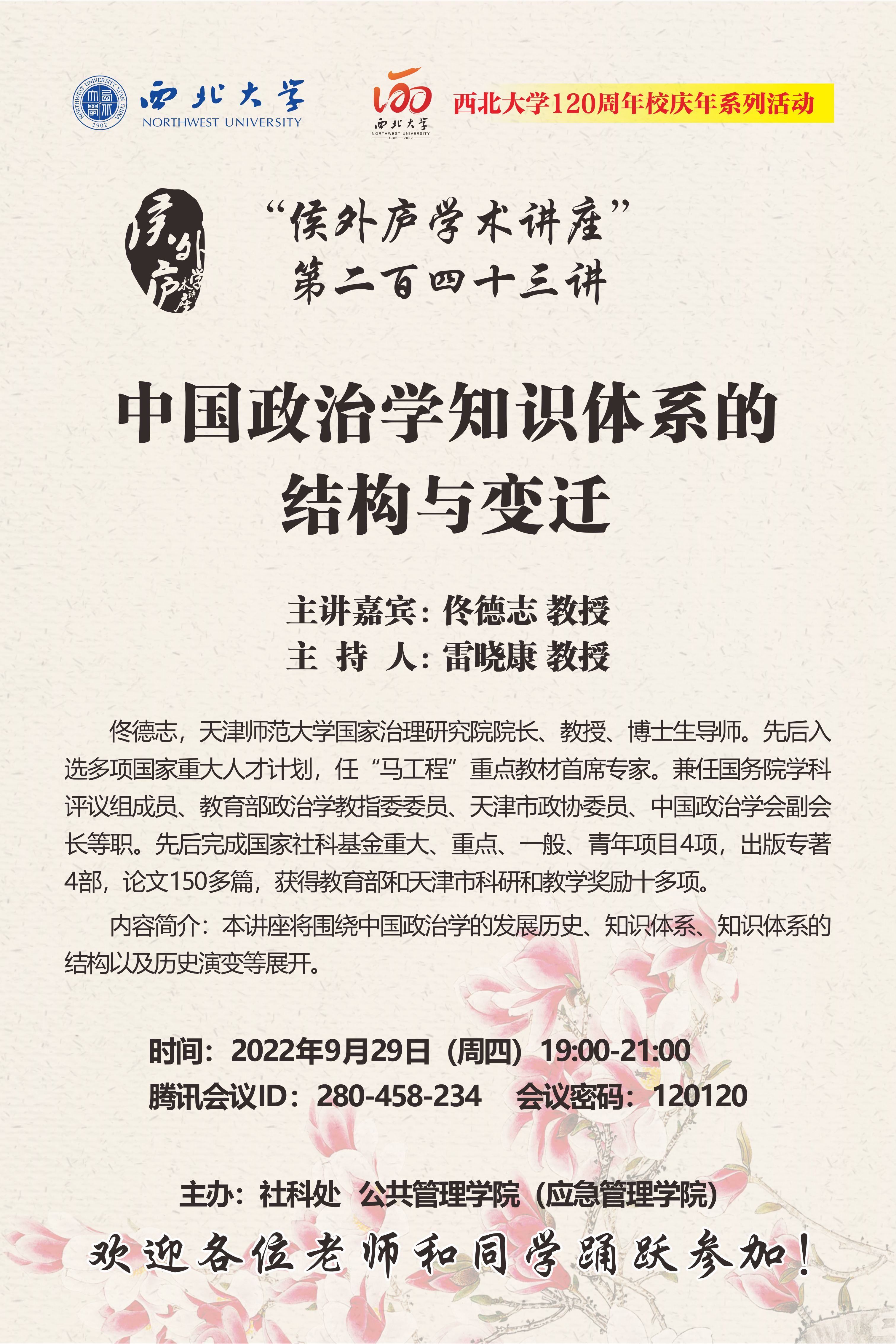 侯外庐学术讲座第二百四十三讲暨120周年校庆年系列活动:中国政治学知识体系的结构与变迁