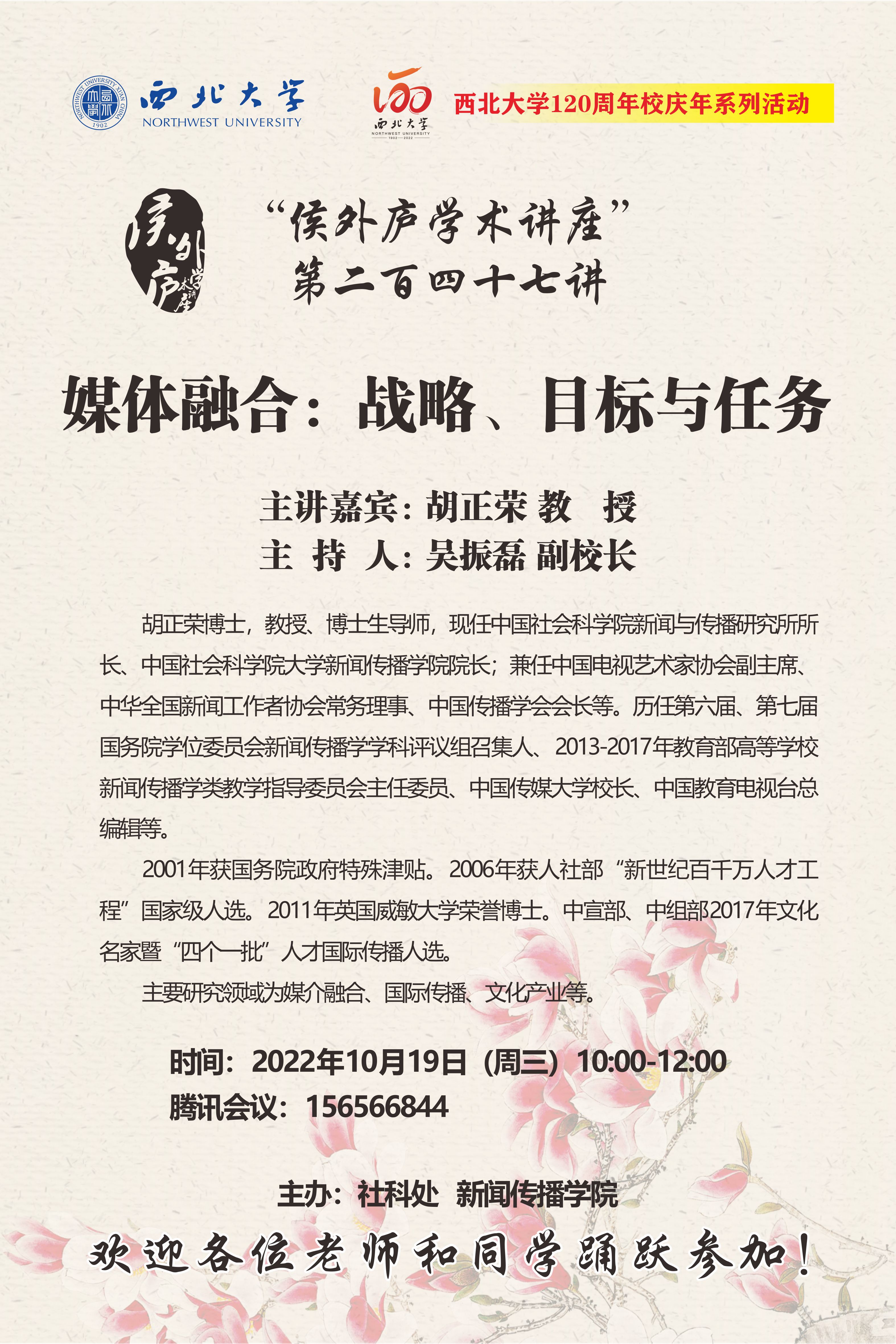 侯外庐学术讲座第二百四十七讲暨120周年校庆年系列活动:媒体融合:战略、目标与任务