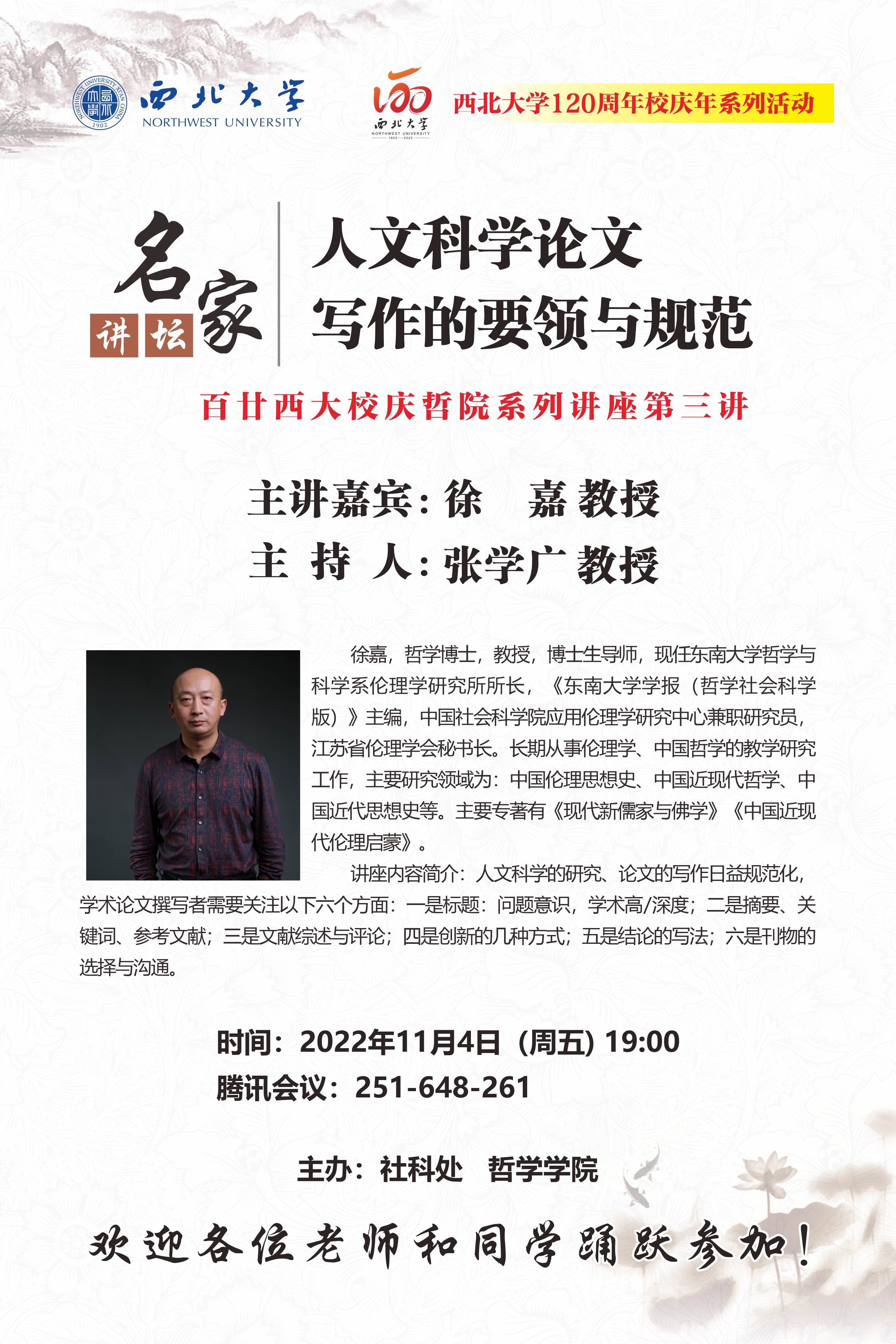 名家讲坛暨120周年校庆年系列活动:人文科学论文写作的要领与规范