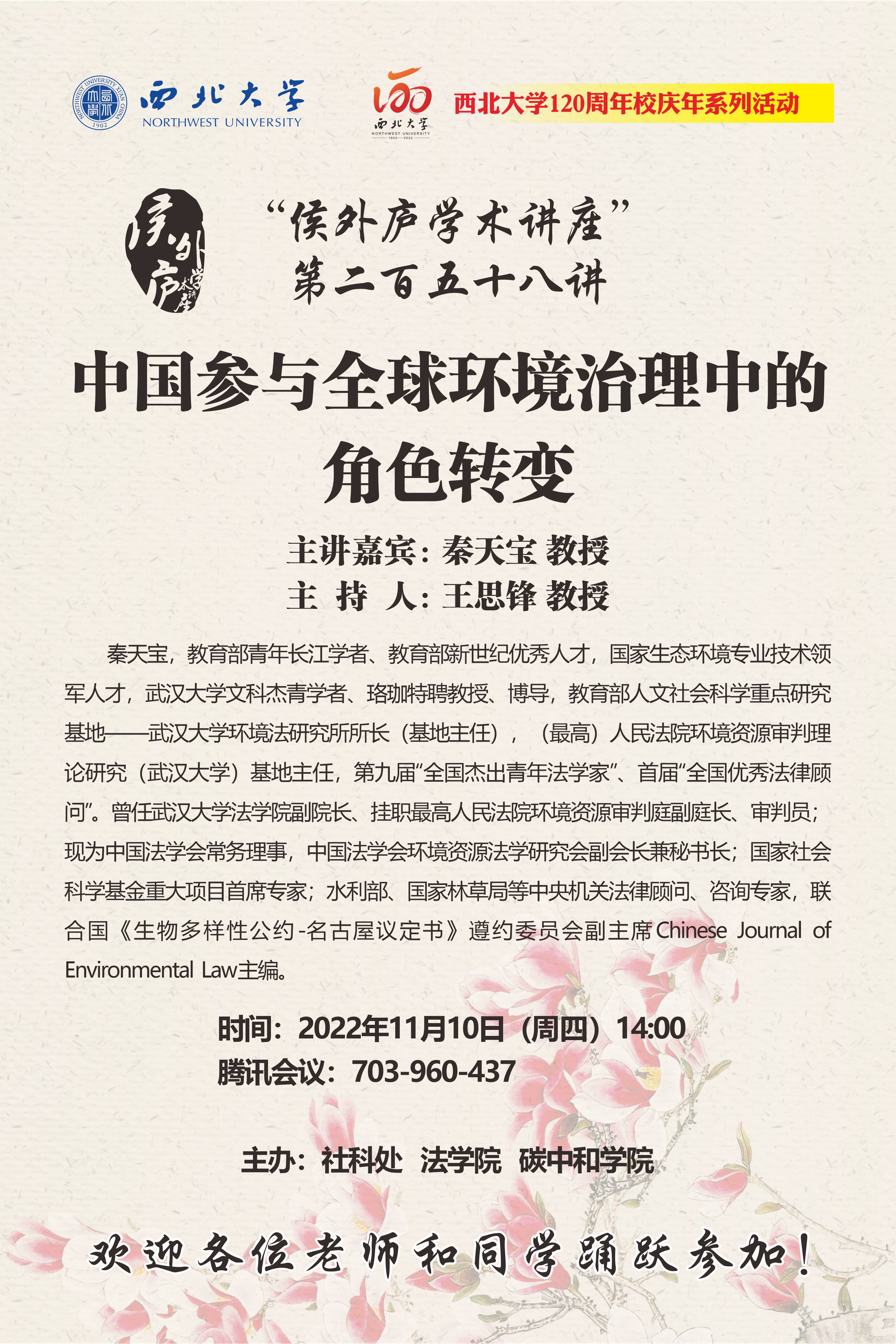侯外庐学术讲座第二百五十八讲暨120周年校庆年系列活动:中国参与全球环境治理中的角色转变