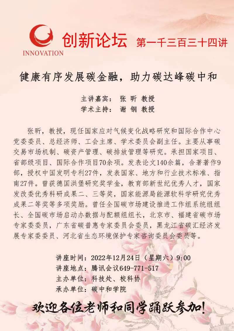 张昕 教授 星空app官网创新论坛第一千三百三十四讲:健康有序发展碳金融,助力碳达峰碳中和 讲座时间 2022年12月24日(星期六)9:00 讲座地点 腾讯会议649-771-517 讲座人介绍 张昕 教授 讲座内容