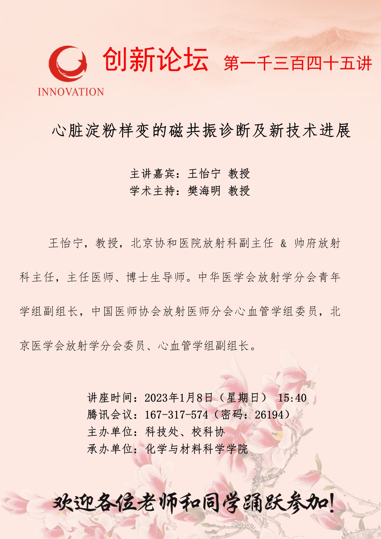 王怡宁 教授 星空app官网创新论坛第一千三百四十五讲:心脏淀粉样变的磁共振诊断及新技术进展 讲座时间 2023年1月8日(星期日) 15:40 讲座地点 腾讯会议:167-317-574 讲座人介绍 王怡宁 教授 讲座内容