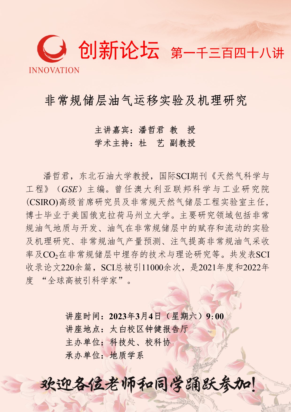 潘哲君 教授 星空app官网创新论坛第一千三百四十八讲:非常规储层油气运移实验及机理研究 讲座时间 2023年3月4日(星期六)9:00 讲座地点 太白校区钟健报告厅 讲座人介绍 潘哲君 教授 讲座内容