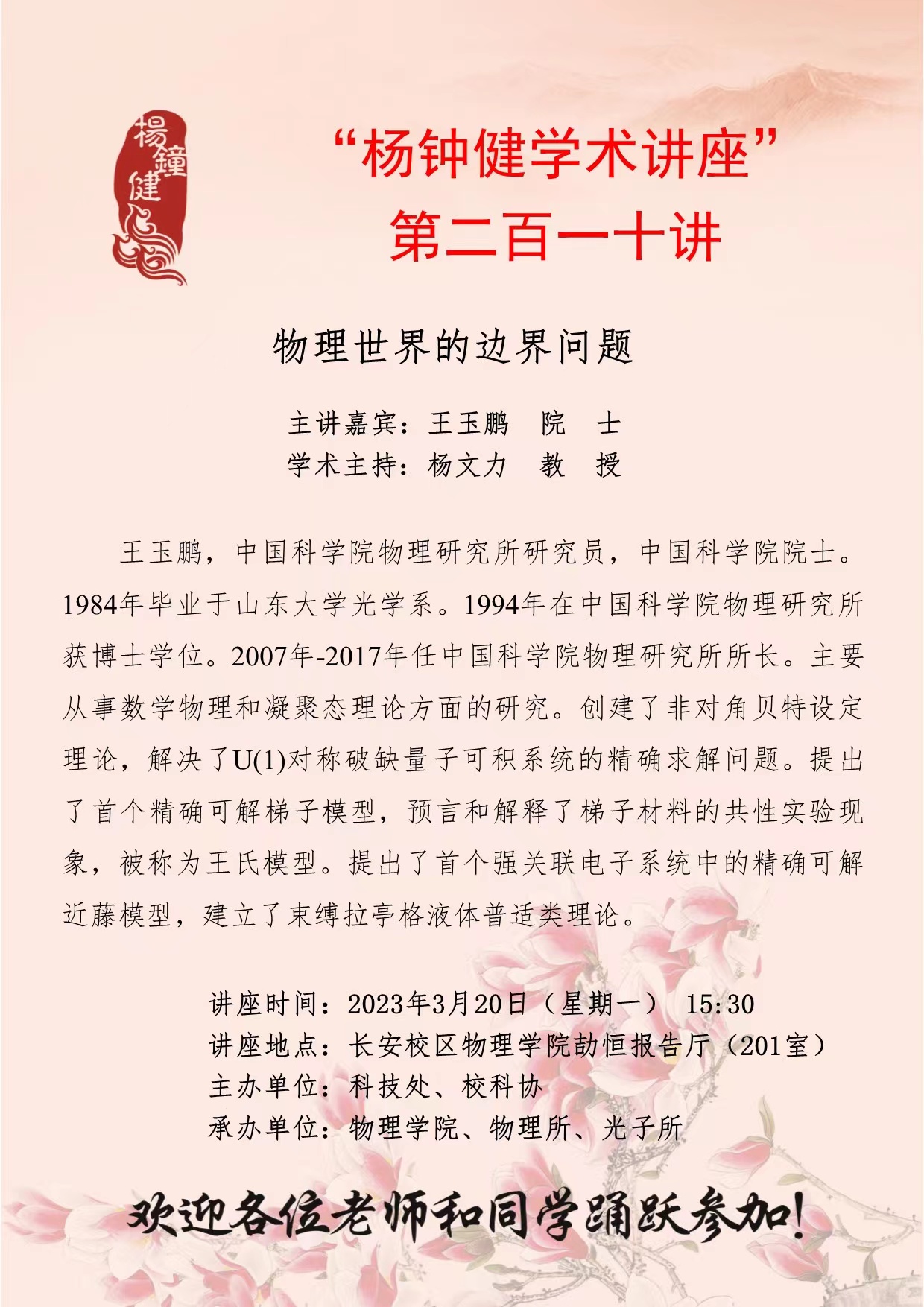 “杨钟健学术讲座”第二百一十讲:物理世界的边界问题