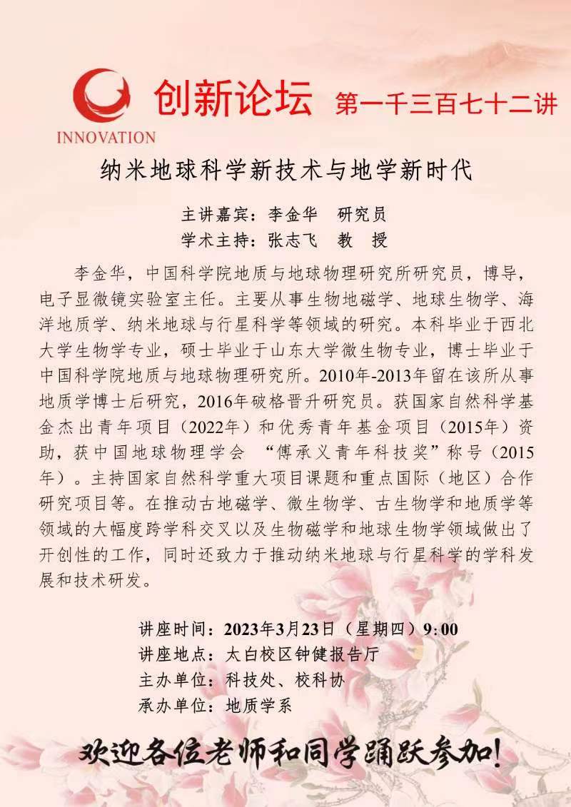 李金华 研究员 星空app官网创新论坛第一千三百七十二讲:纳米地球科学新技术与地学新时代 讲座时间 2023年3月23日(星期四)9:00 讲座地点 太白校区钟健报告厅 讲座人介绍 李金华 研究员 讲座内容