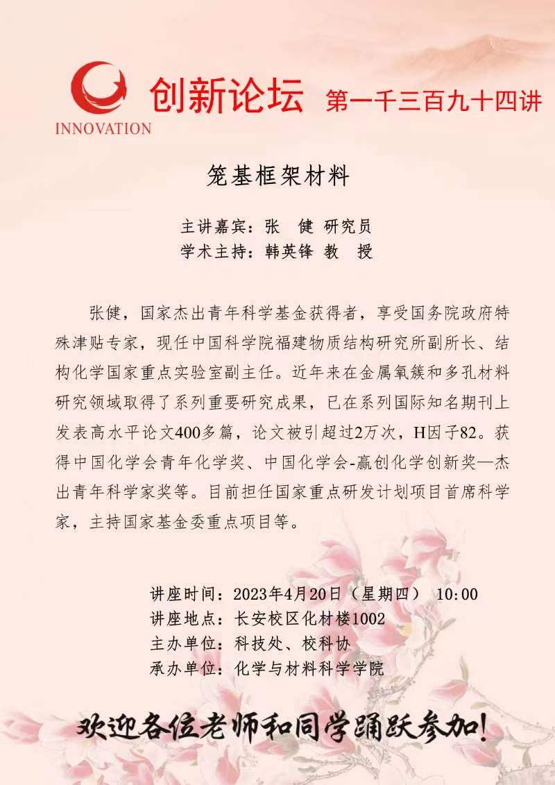 星空app官网创新论坛第一千三百九十五讲:配位聚合物多孔材料与吸附分离