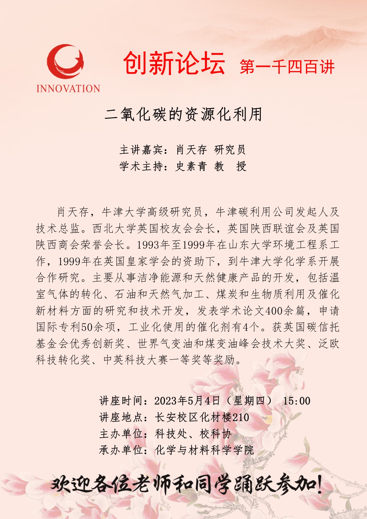星空app官网创新论坛第一千四百讲:二氧化碳的资源化利用