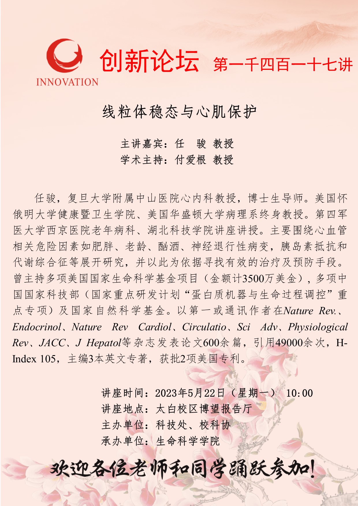 星空app官网创新论坛第一千四百一十七讲:线粒体稳态与心肌保护