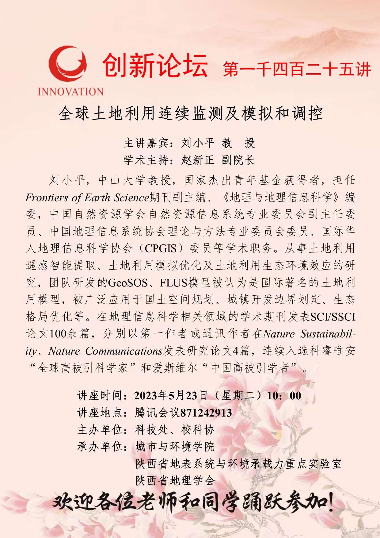 刘小平 教授 星空app官网创新论坛第一千四百二十五讲:全球土地利用连续监测及模拟和调控优化 讲座时间 2023年5月23日(星期二)10:00 讲座地点 腾讯会议871242913 讲座人介绍 刘小平 教授 讲座内容