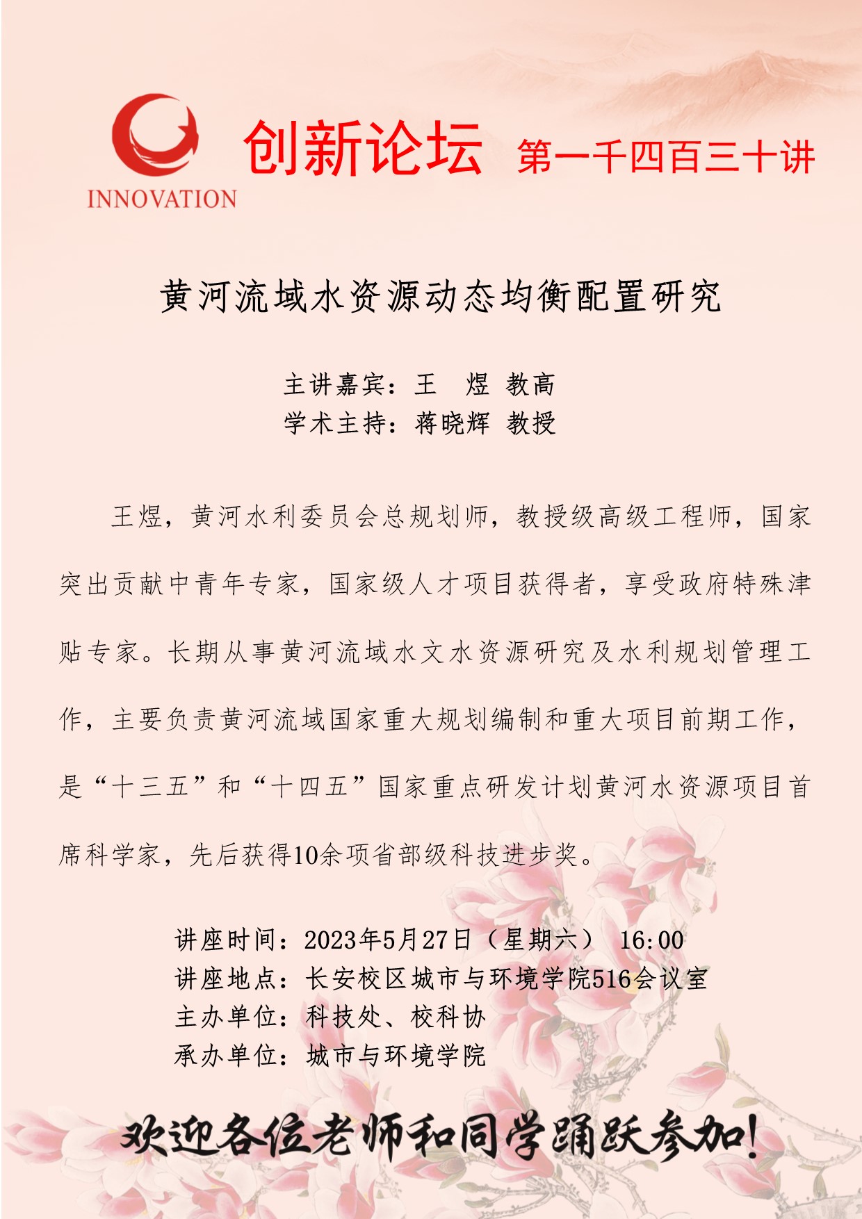 王 煜 教高 星空app官网创新论坛第一千四百三十讲:黄河流域水资源动态均衡配置研究 讲座时间 2023年5月27日(星期六) 16:00 讲座地点 长安校区城市与环境学院516会议室 讲座人介绍 王 煜 教高 讲座内容