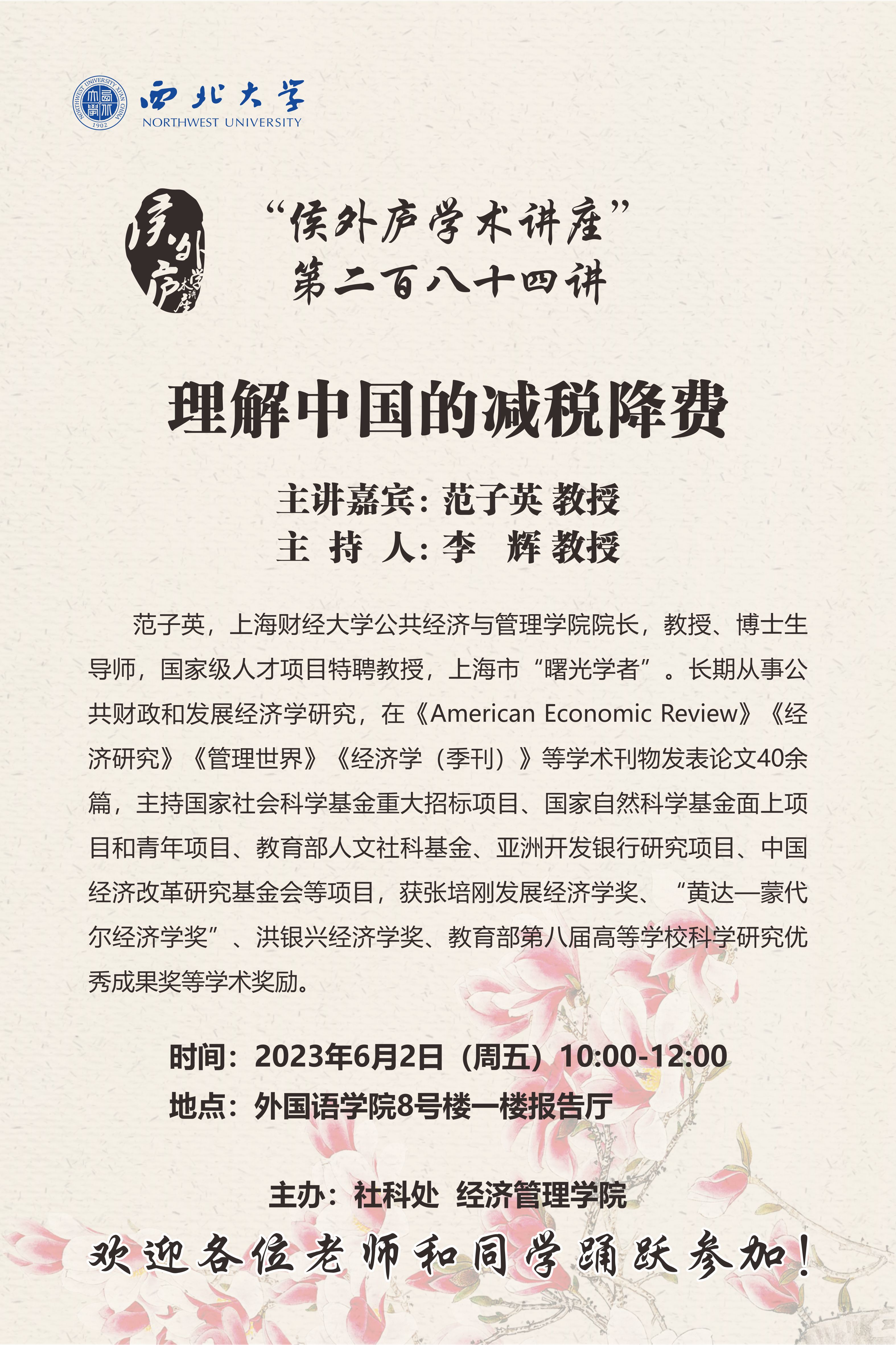 侯外庐学术讲座第二百八十四讲:理解中国的减税降费