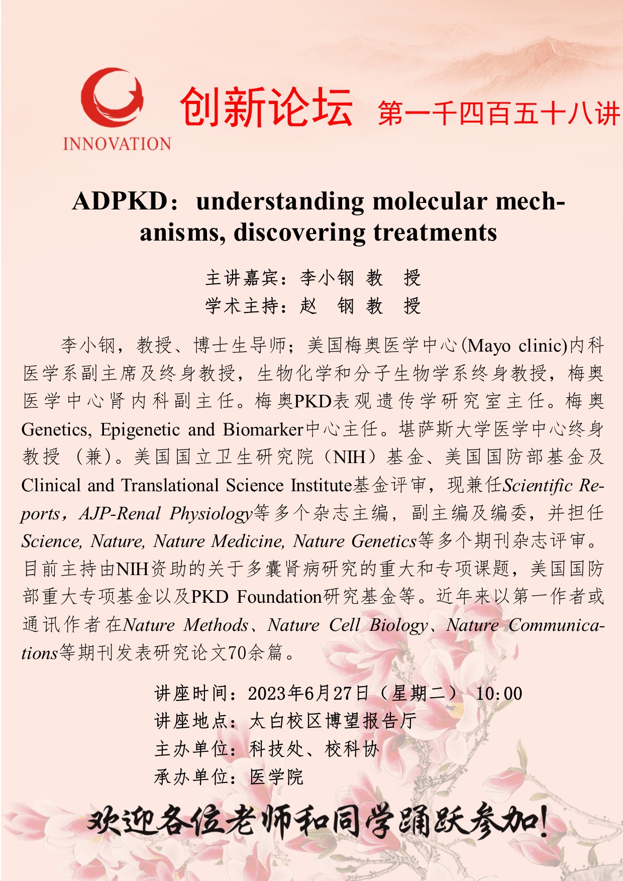 李小钢 教 授 星空app官网创新论坛第一千四百五十八讲:ADPKD:understanding molecular mechanisms, discovering treatments 讲座时间 2023年6月27日(星期二) 10:00 讲座地点 太白校区博望报告厅 讲座人介绍 李小钢 教 授 讲座内容