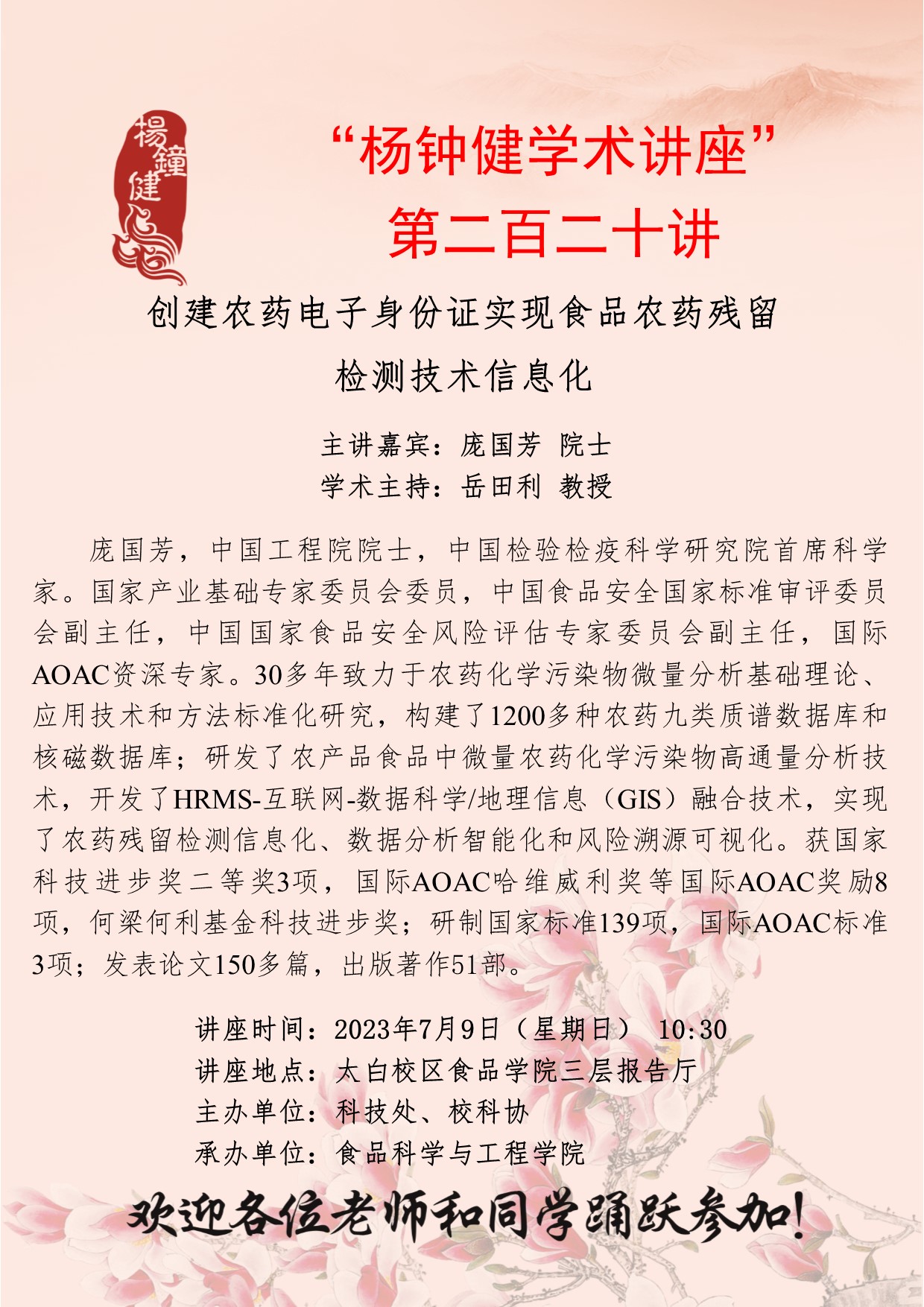 “杨钟健学术讲座”第二百二十讲:创建农药电子身份证实现食品农药残留检测技术信息化