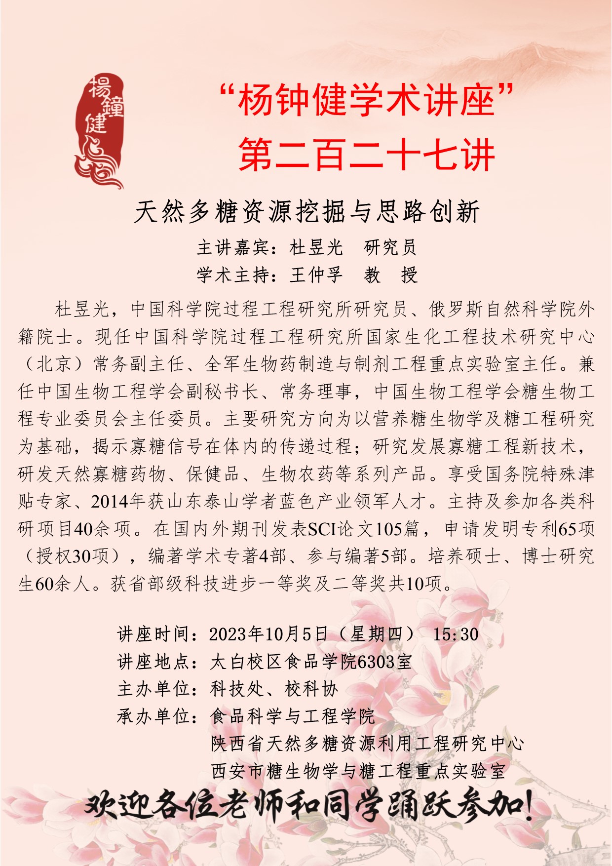 “杨钟健学术讲座”第二百二十七讲:天然多糖资源挖掘与思路创新