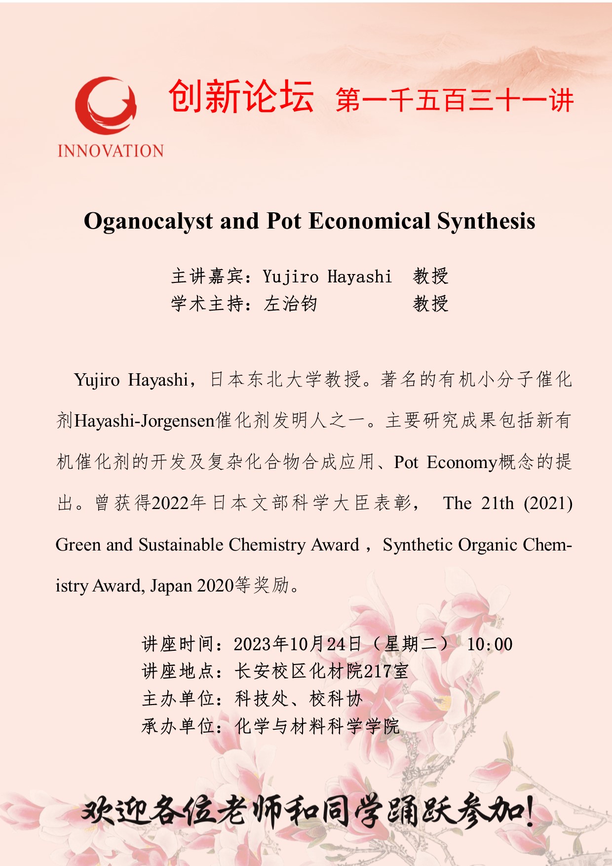 Yujiro Hayashi 教授 星空app官网创新论坛第一千五百三十一讲:Oganocalyst and Pot Economical Synthesis 讲座时间 2023年10月24日(星期二) 10:00 讲座地点 长安校区化材院217室 讲座人介绍 Yujiro Hayashi 教授 讲座内容