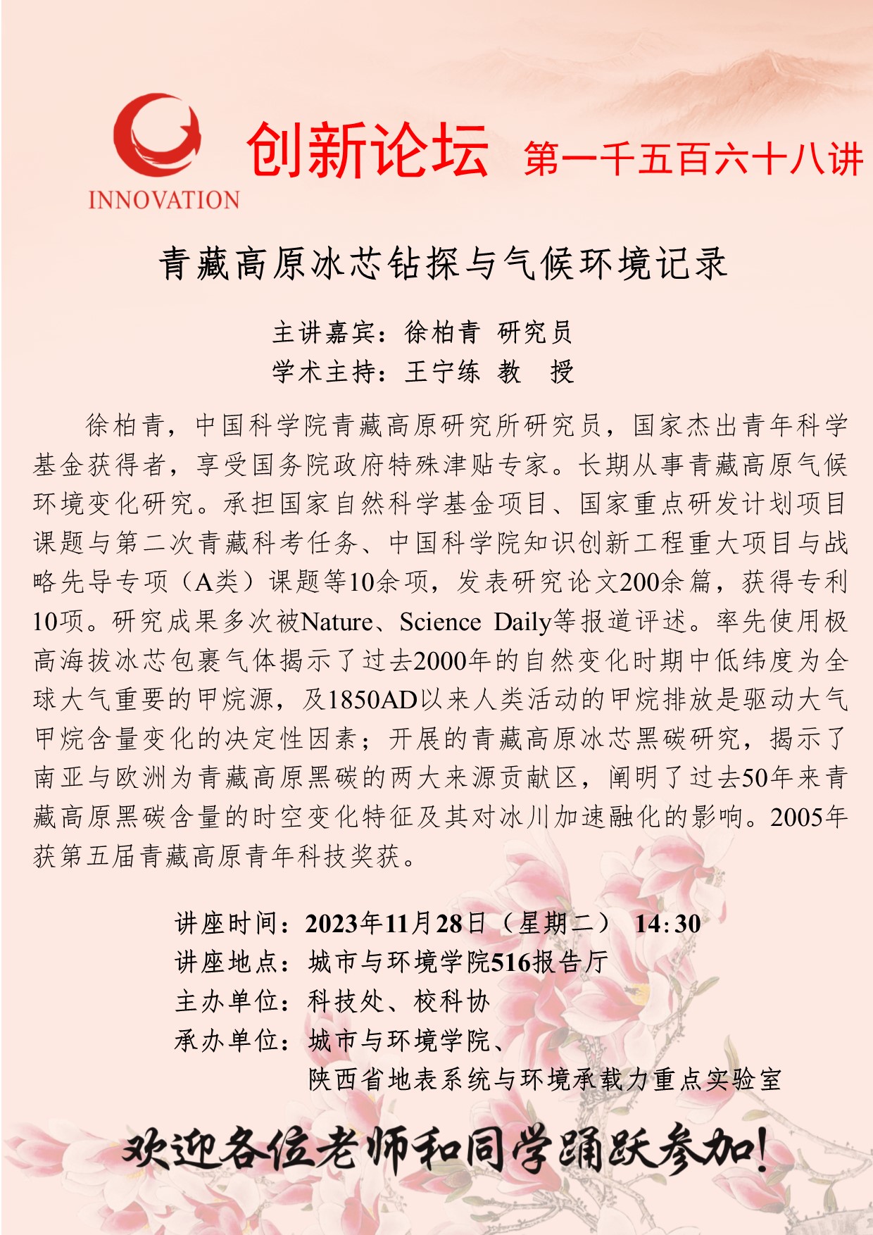 徐柏青 研究员 星空app官网创新论坛第一千五百六十八讲:青藏高原冰芯钻探与气候环境记录 讲座时间 2023年11月28日(星期二) 14:30 讲座地点 城市与环境学院516报告厅 讲座人介绍 徐柏青 研究员 讲座内容