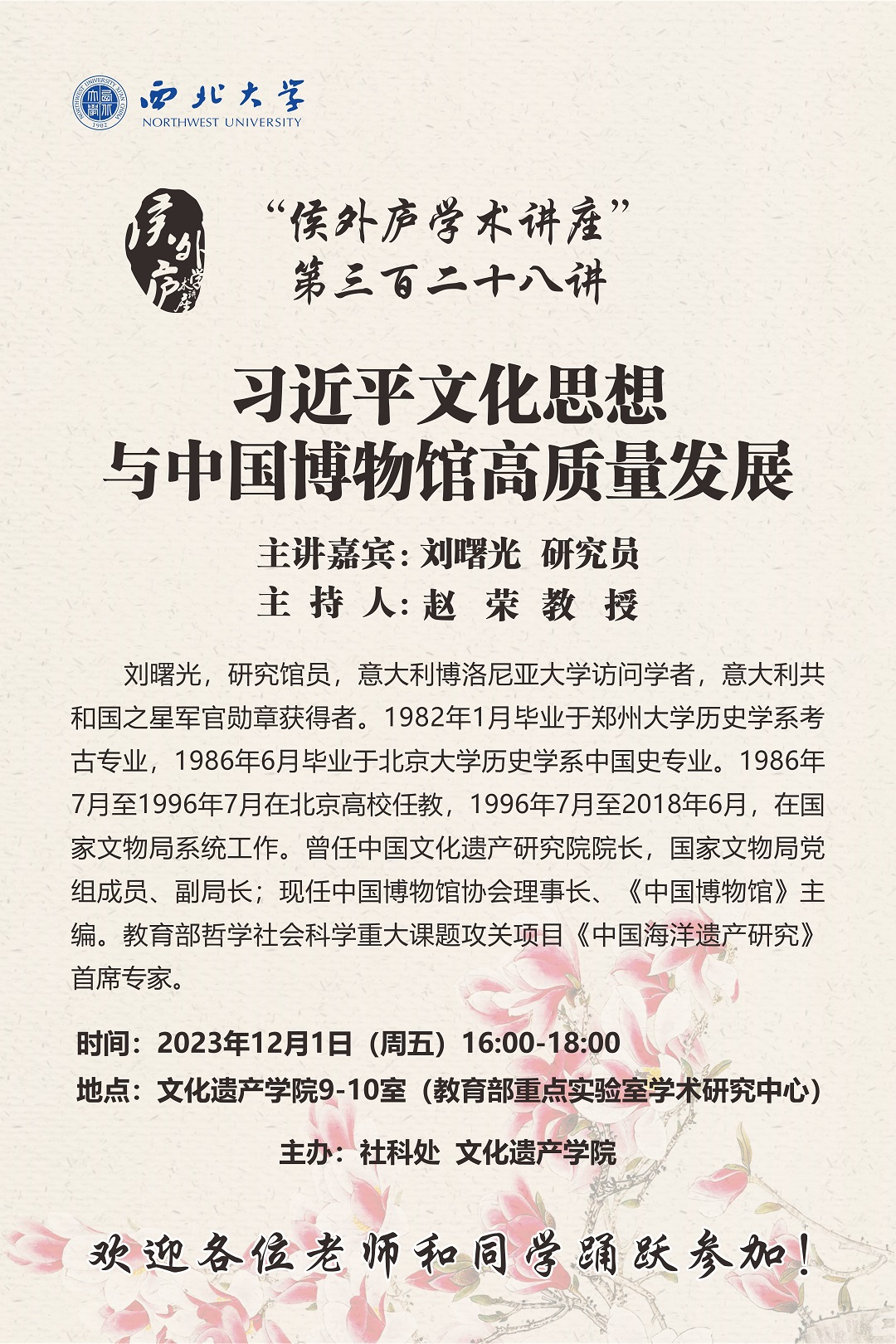 侯外庐学术讲座第三百二十八讲:习近平文化思想与中国博物馆高质量发展
