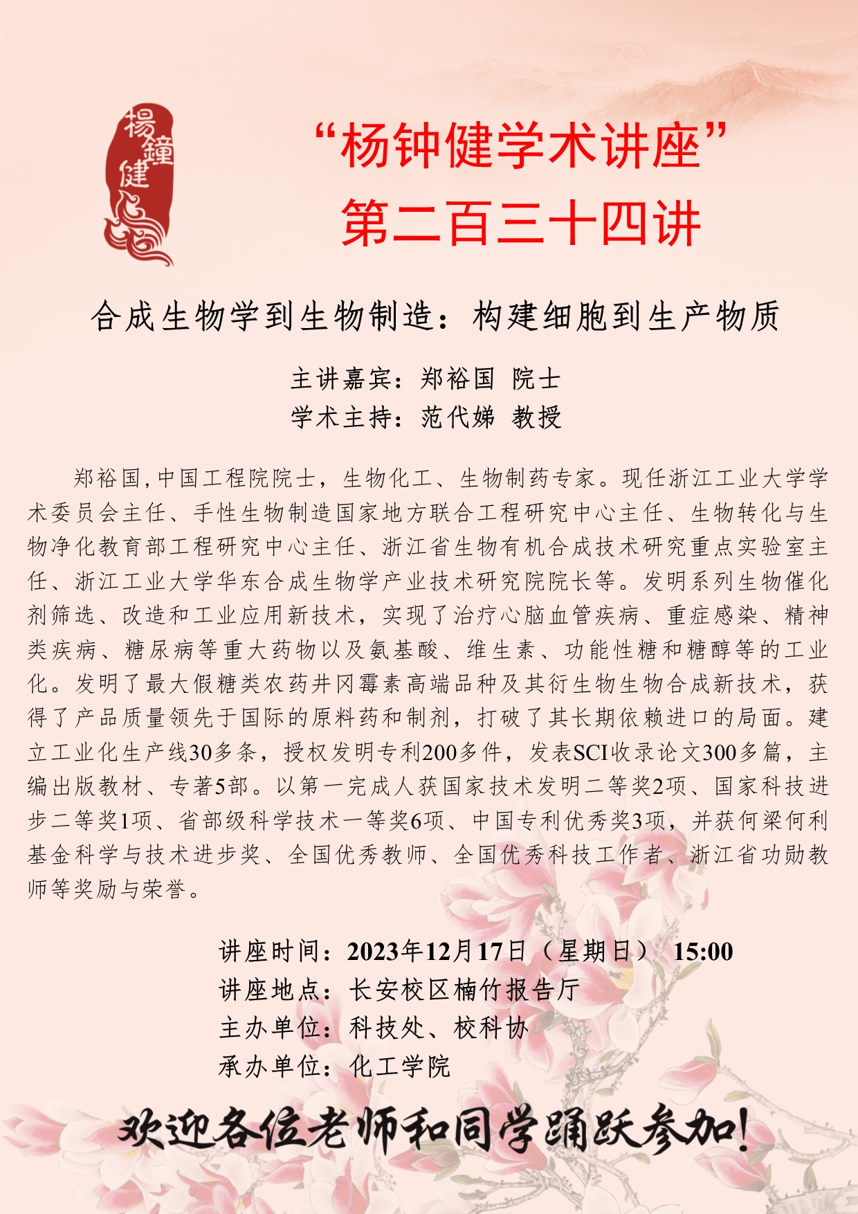“杨钟健学术讲座”第二百三十四讲:合成生物学到生物制造:构建细胞到生产物质