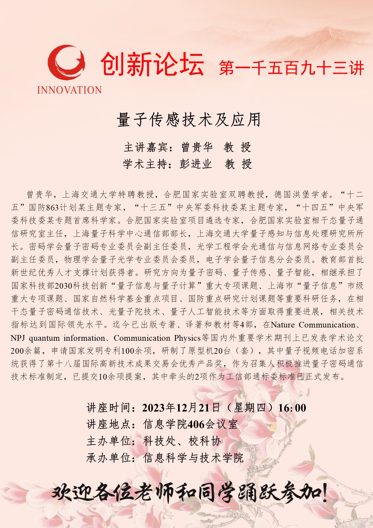 星空app官网创新论坛第一千五百九十三讲:量子传感技术及应用