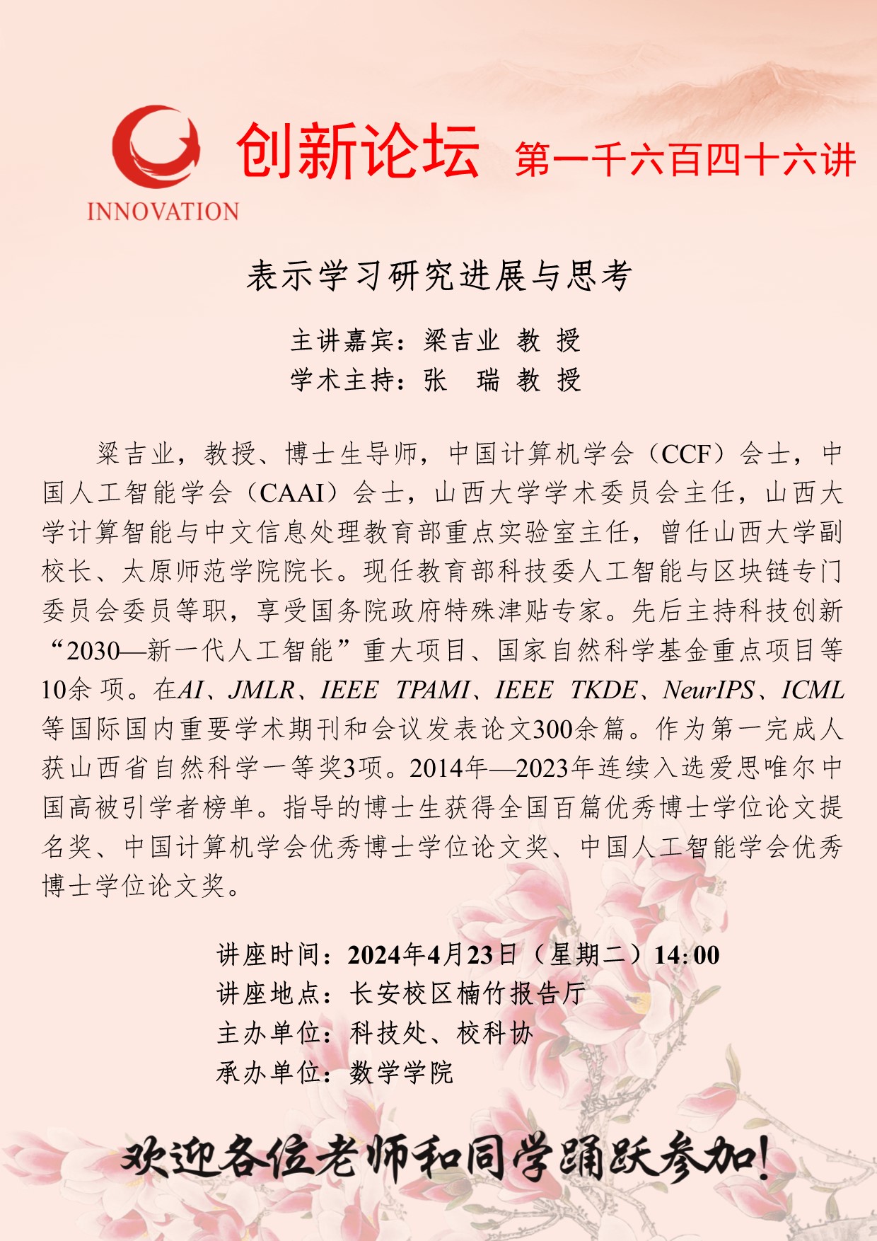 星空app官网创新论坛第一千六百四十六讲:表示学习研究进展与思考