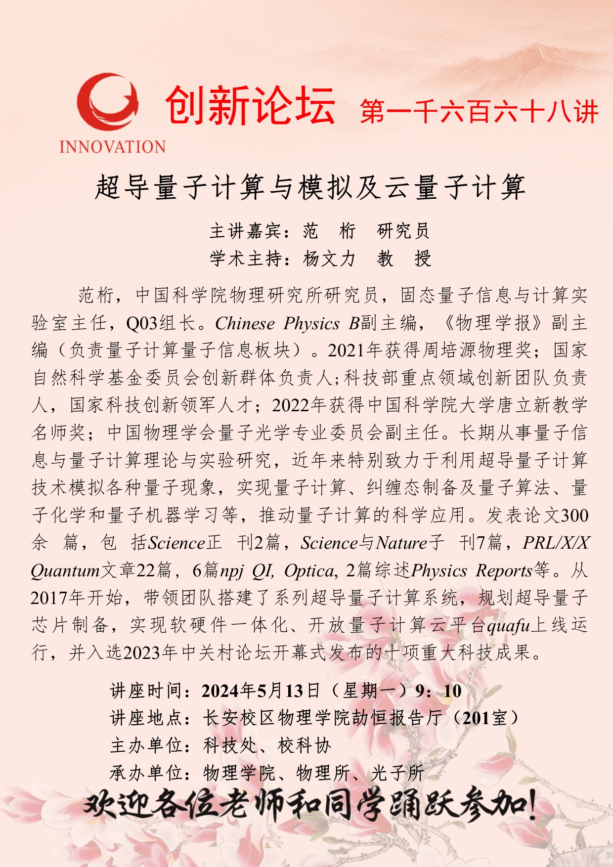 范桁 研究员 星空app官网创新论坛第一千六百六十八讲:超导量子计算与模拟及云量子计算 讲座时间 2024年5月13日(星期一)9:10 讲座地点 长安校区物理学院劼恒报告厅(201室) 讲座人介绍 范桁 研究员 讲座内容