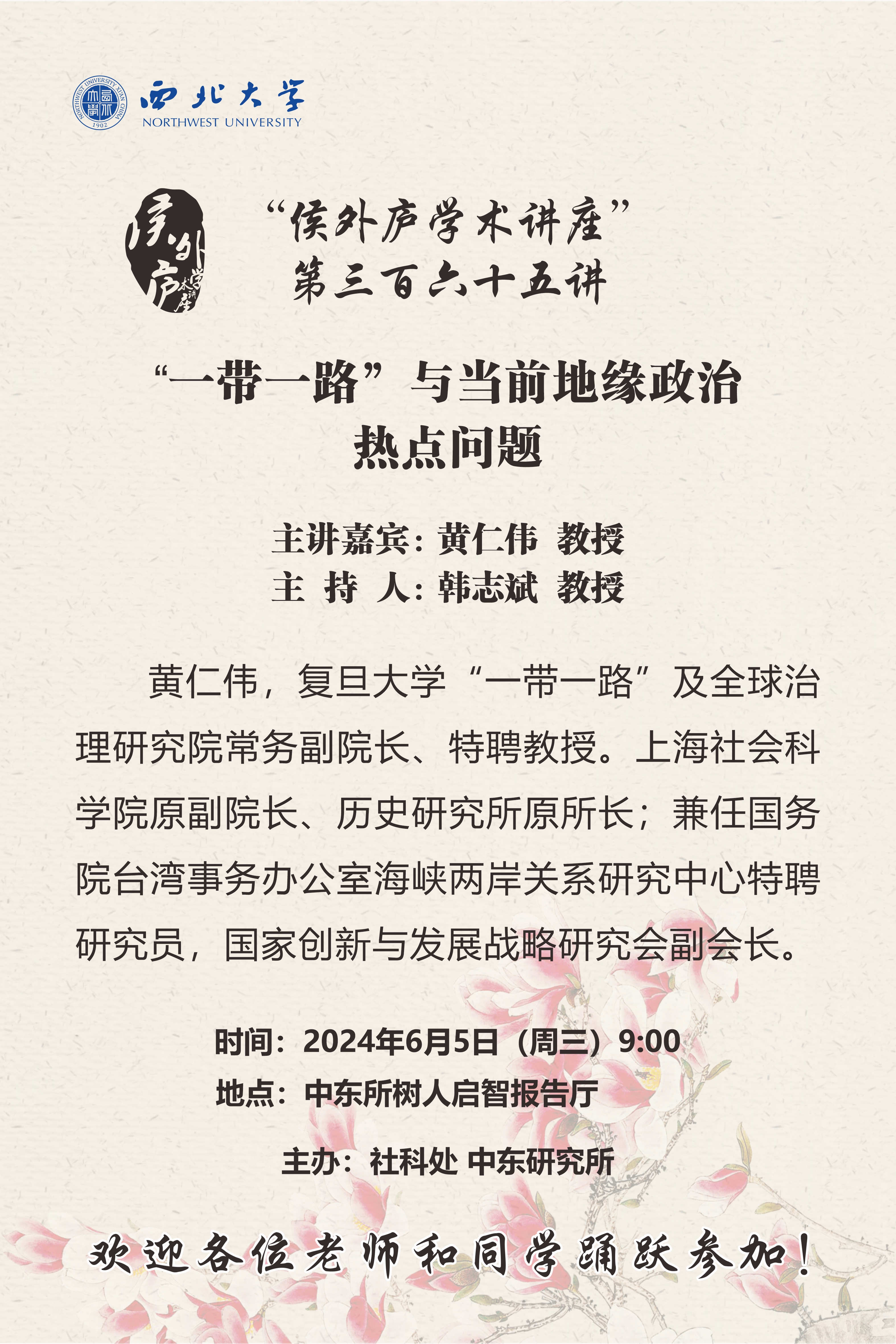 侯外庐学术讲座第三百六十五讲:“一带一路”与当前地缘政治热点问题